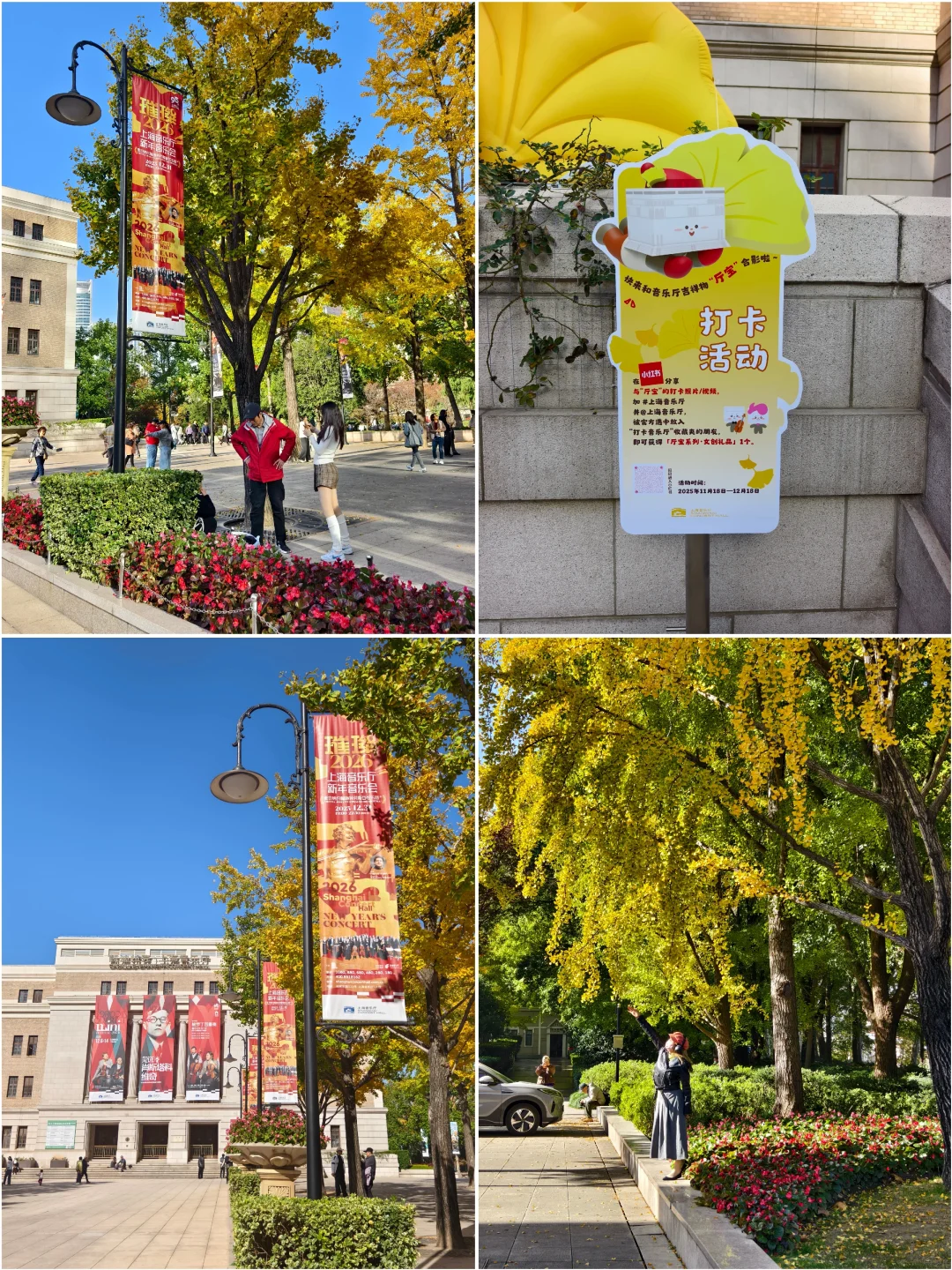 🔥凯迪拉克·上海音乐厅的银杏,已经进入最佳观赏期了!现在(12月初)正是满地金黄的时候了! 🔥创意互动: 即日起至12月18日,可参与打卡活动:与广场上的“秋日厅宝”(银杏主题装置)合影,带话题