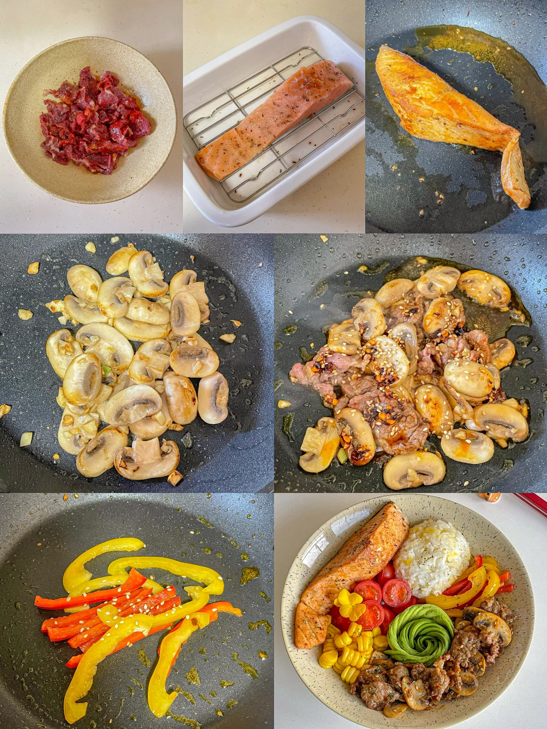 干净饮食🍣三文鱼牛肉口蘑牛油果波奇饭🥑