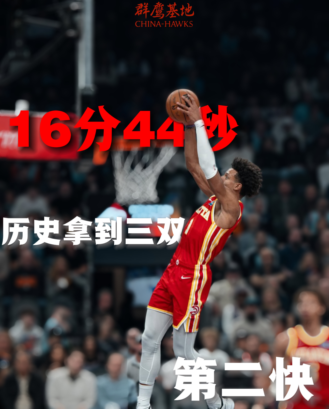 杰伦·约翰逊仅用16分44秒拿到三双,历史第2快,仅次于约基奇🤯亚特兰大老鹰 // chinahawks // 我的观赛搭子