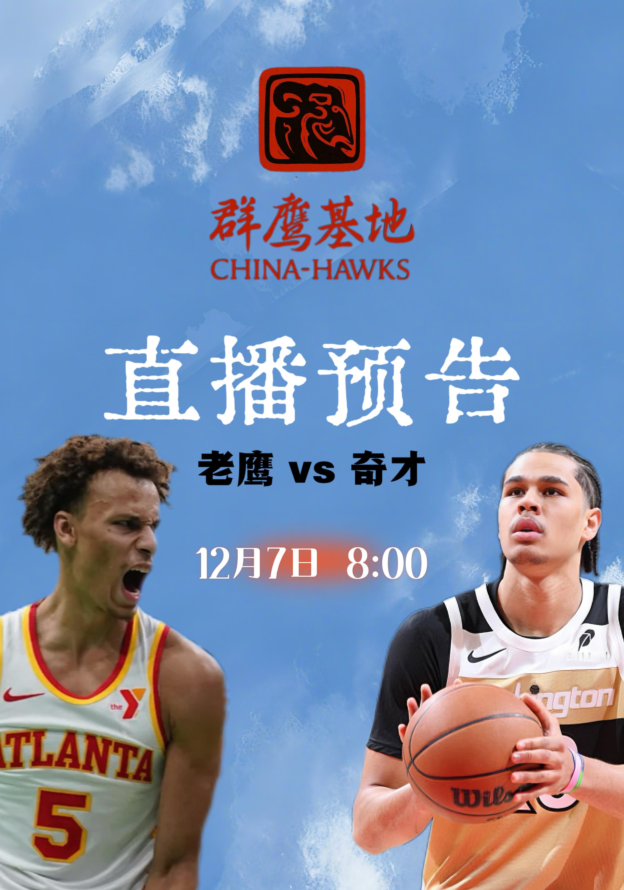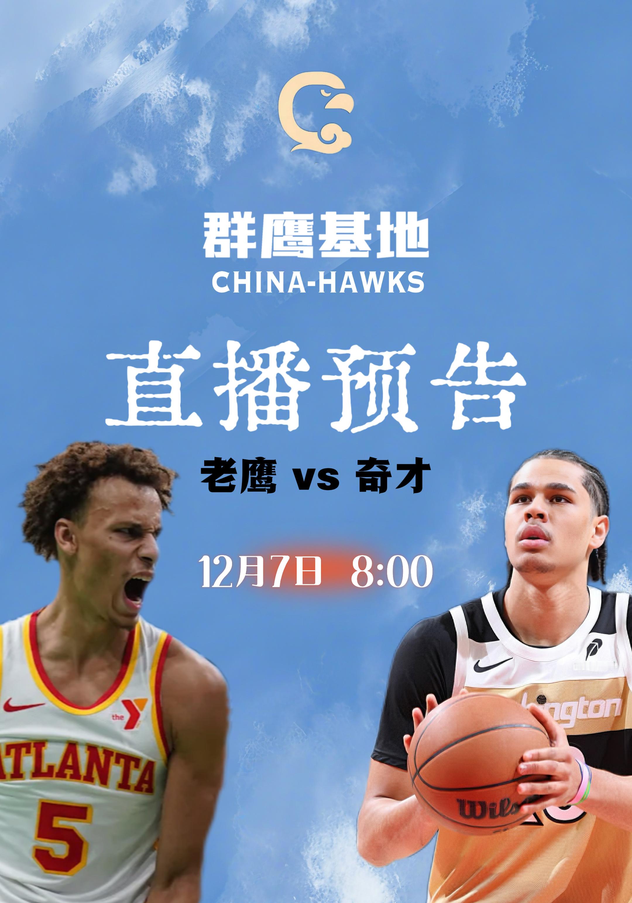 明天上午8点,Real会继续在跟大家解说老鹰与奇才的比赛,欢迎大家前来直播间看球!chinahawks // 亚特兰大老鹰