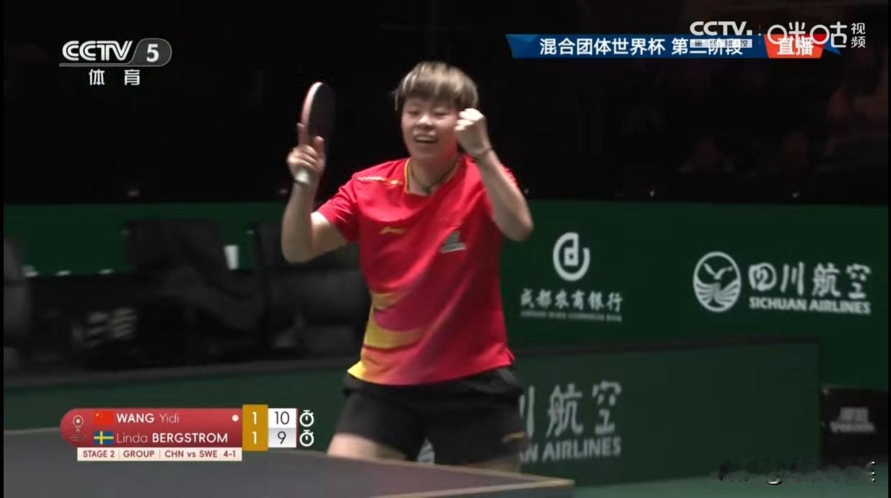 王艺迪在本届乒乓球混合团体世界杯首次亮相,在中国与瑞典的第二盘比赛中作为女单对阵瑞典的贝里斯特罗。 王艺迪一扫对削球选手的阴霾,在丢掉首局后,连拿两局,以2:1战胜对手,为中国队赢得1分。