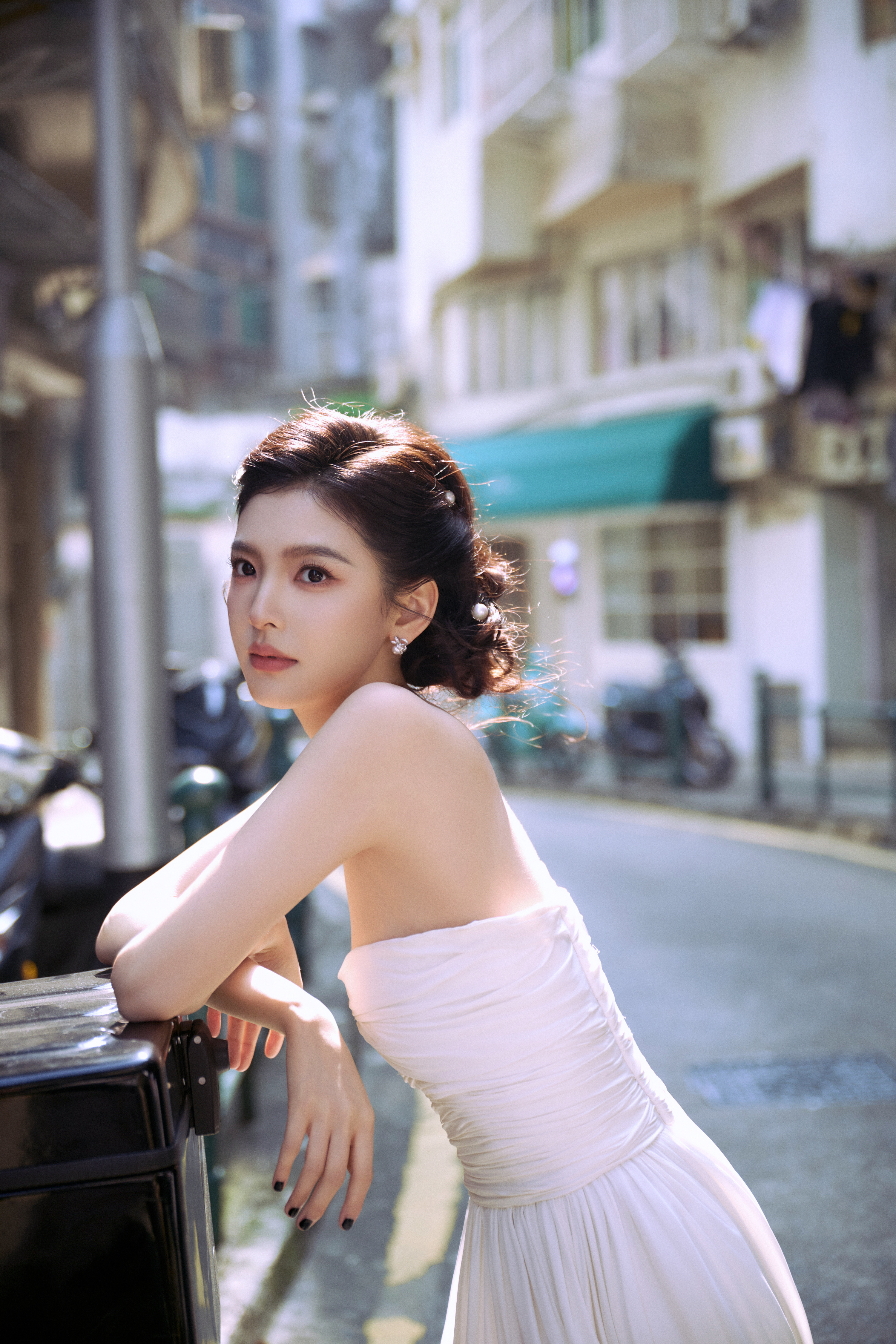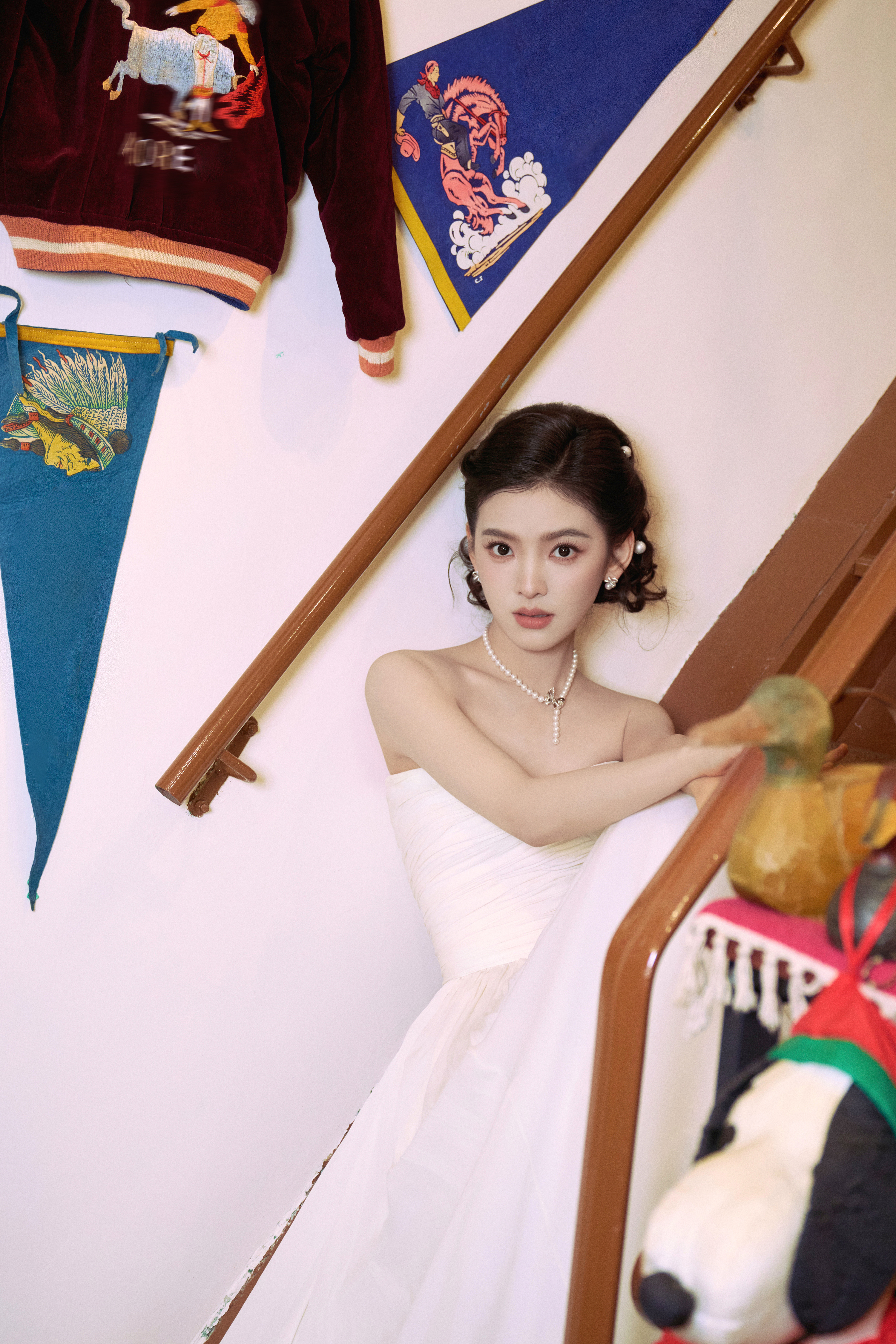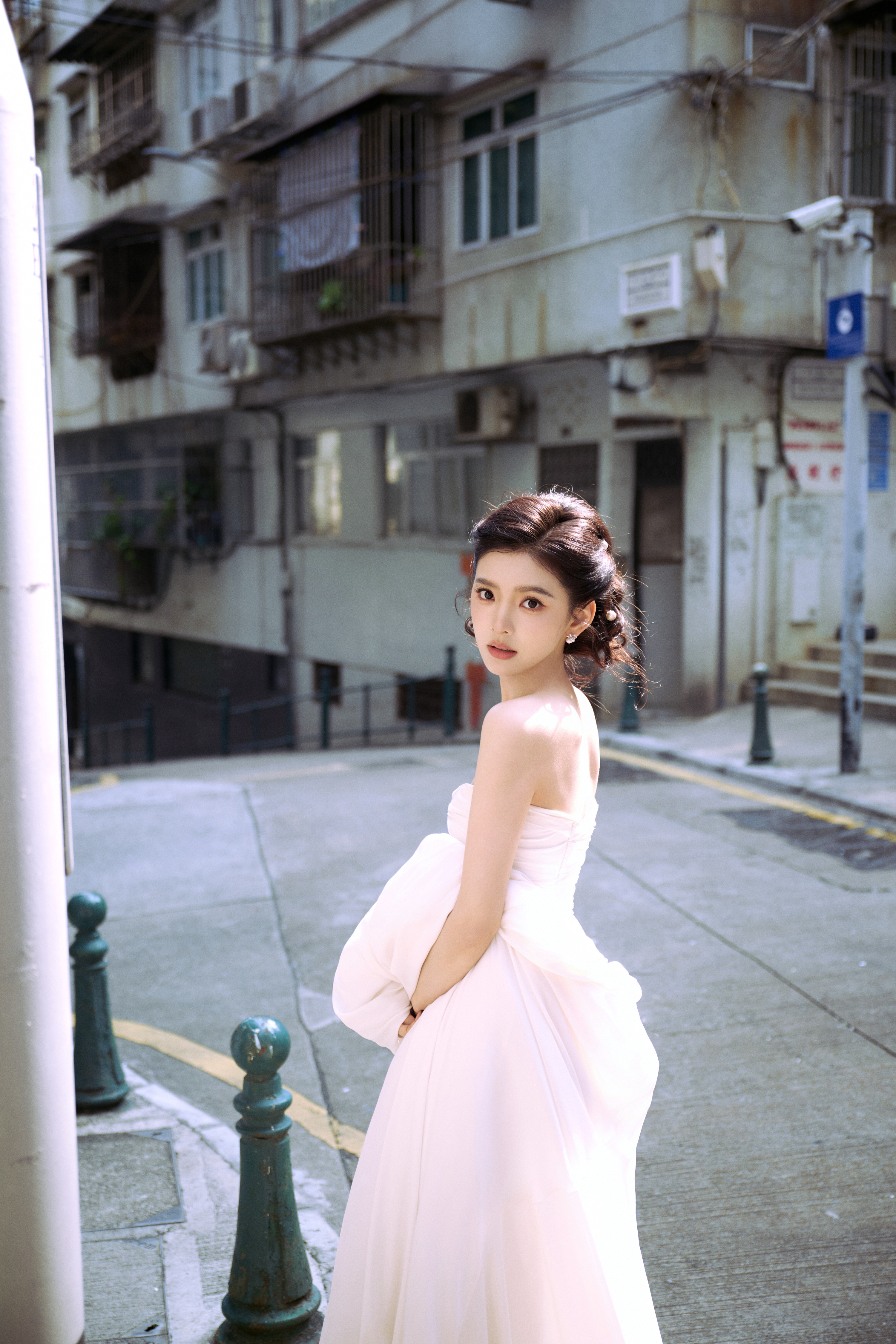 章若楠 一袭极简白裙勾勒出流畅的肩颈线条,无袖抹胸设计利落又高级,垂坠的裙摆自带松弛感。章若楠 落跑新娘