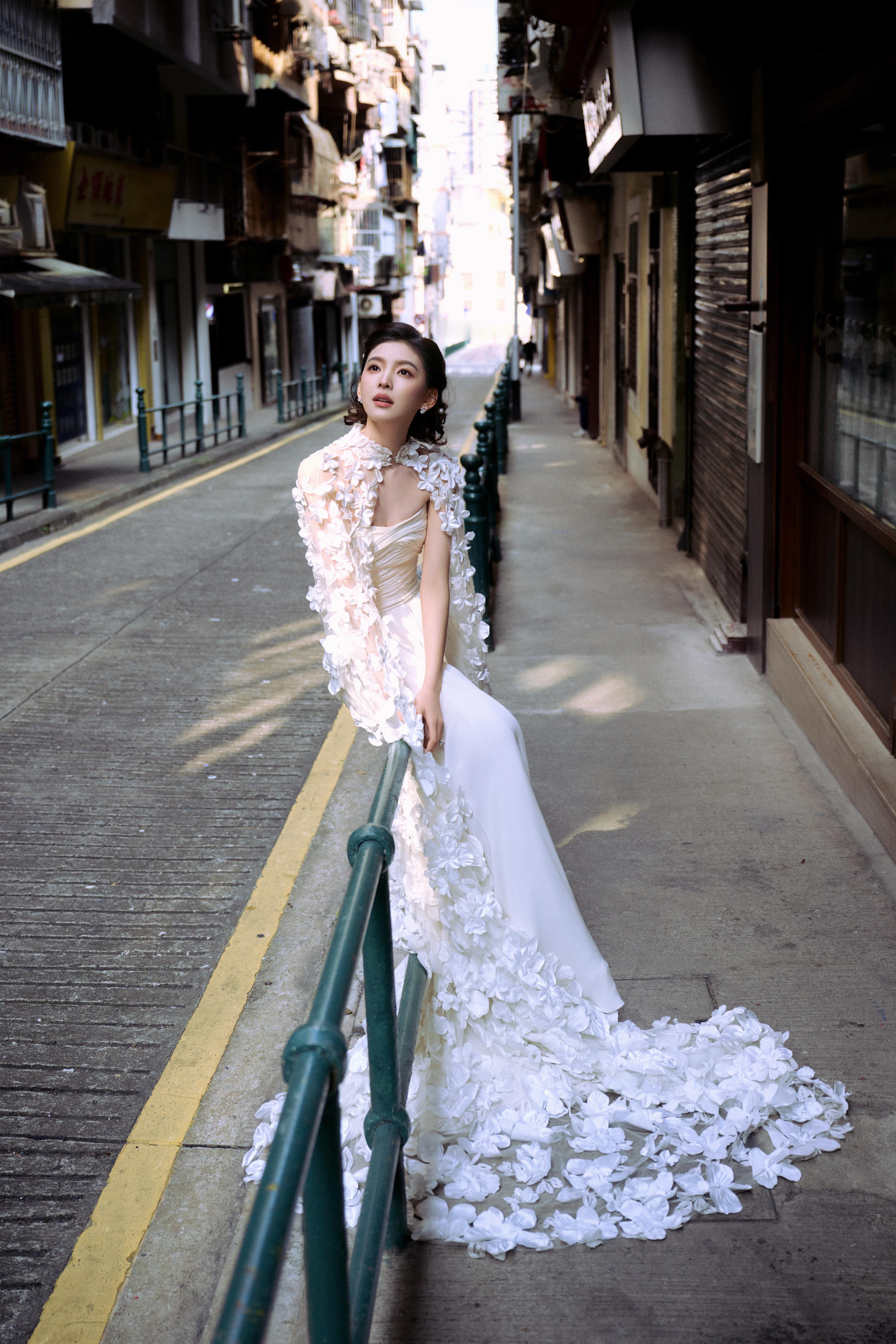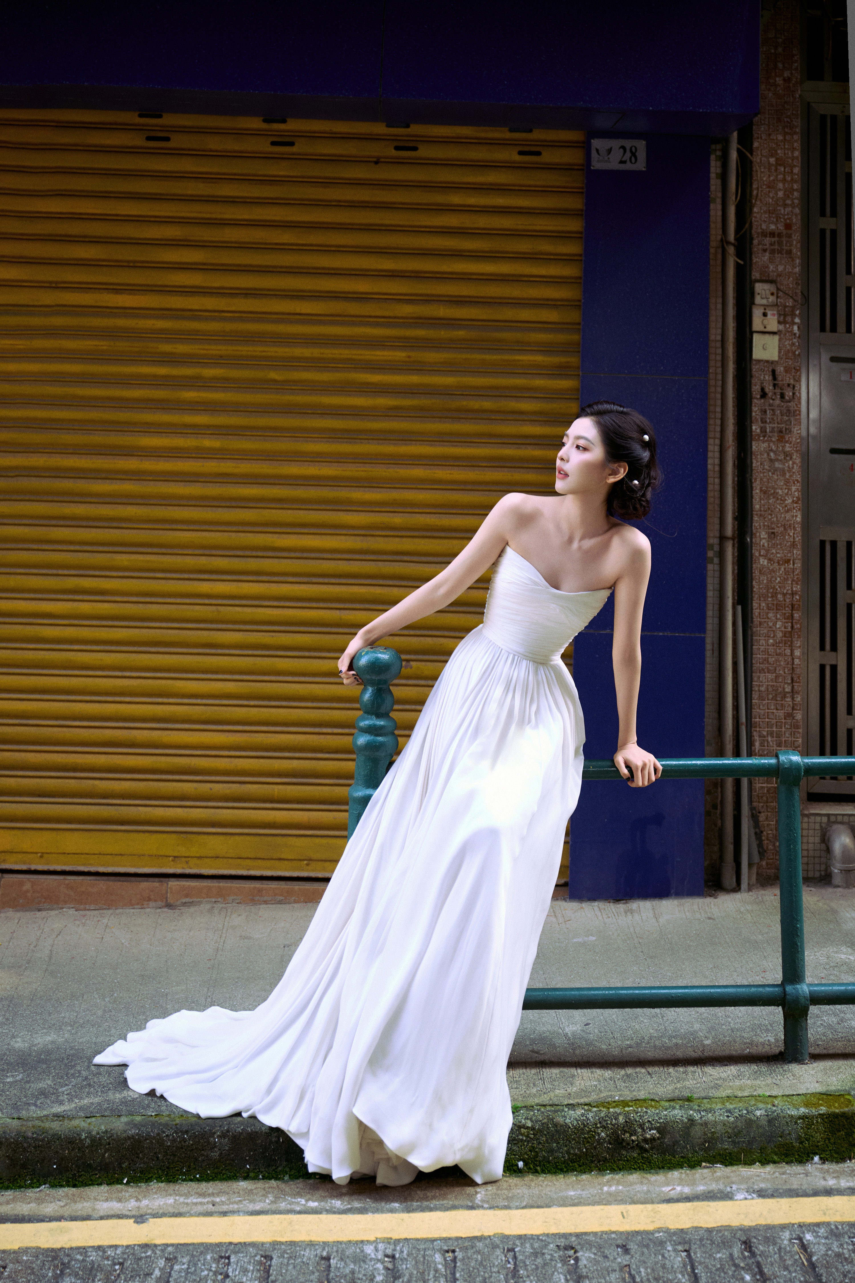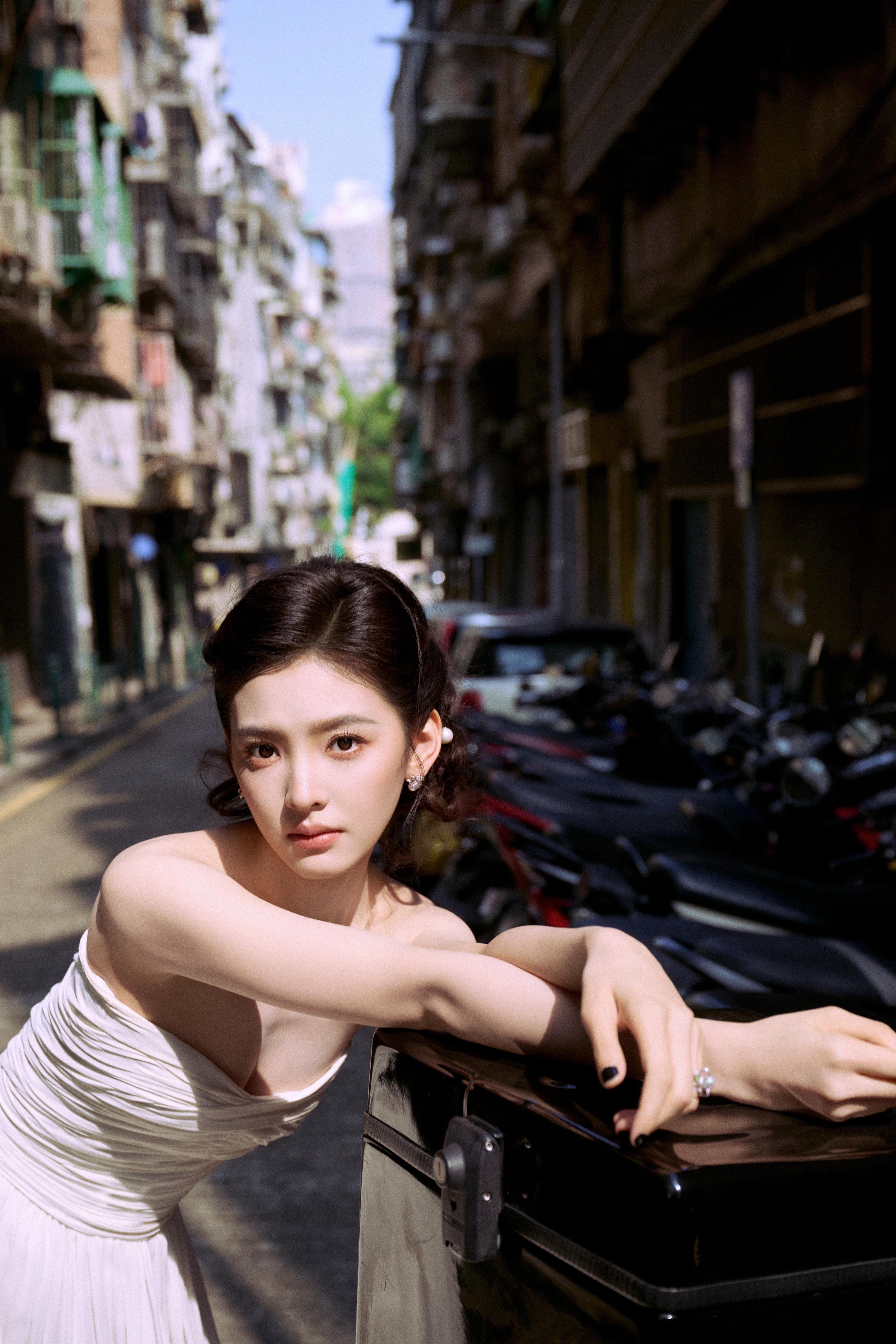 章若楠 一袭极简白裙勾勒出流畅的肩颈线条,无袖抹胸设计利落又高级,垂坠的裙摆自带松弛感。章若楠 落跑新娘