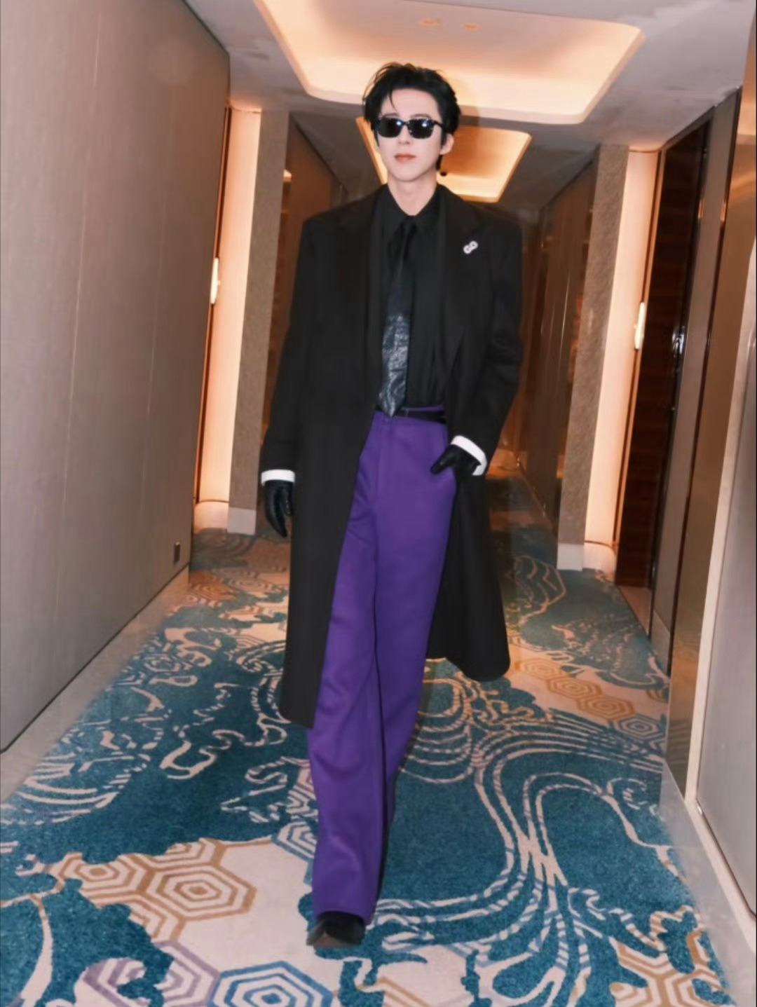 刘宇宁往那一站神图有了 黑大衣搭配高饱和紫裤,撞色时髦又亮眼,黑手套+墨镜加持冷感,190+身形自带松弛贵气,往那一站不用摆拍,氛围感直接拉满!