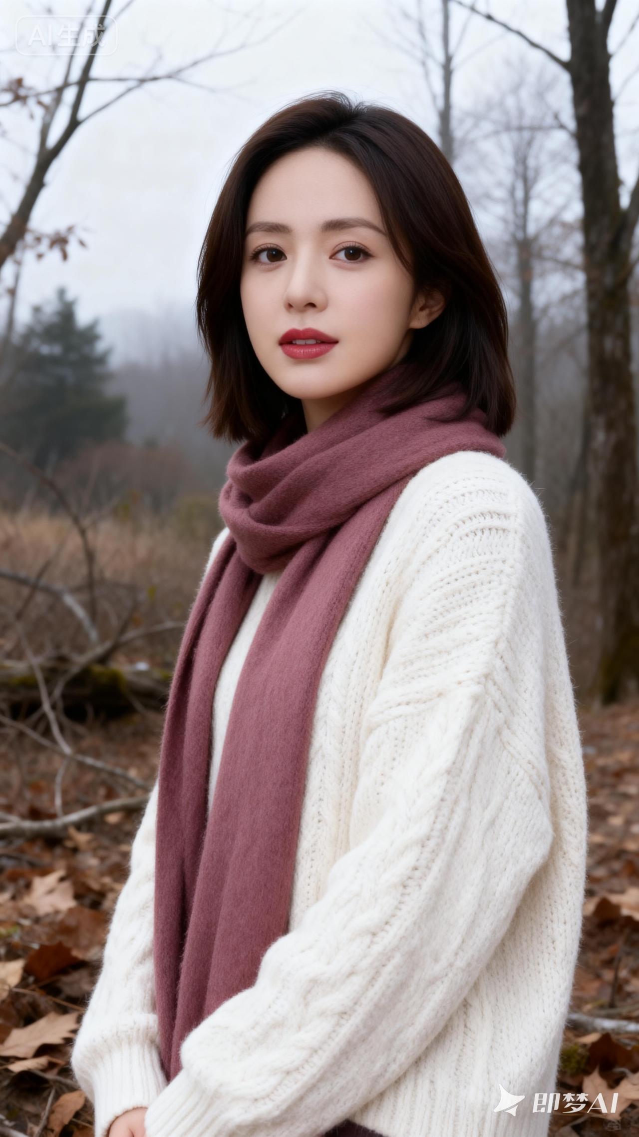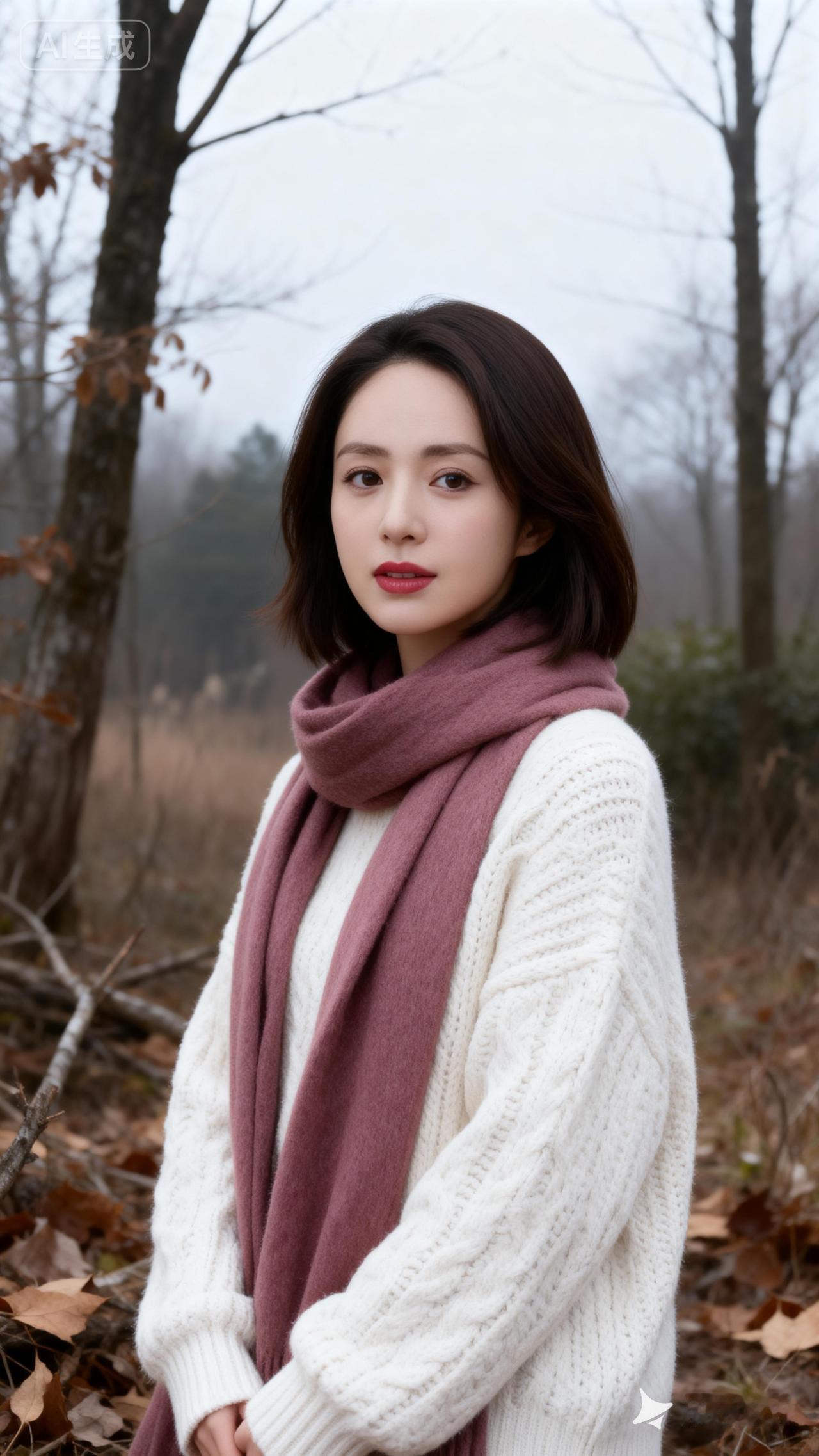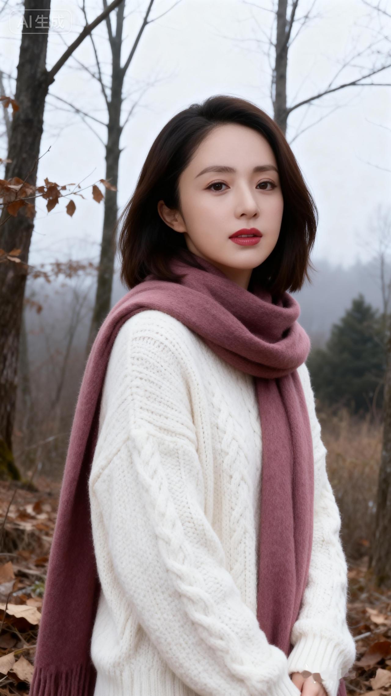 冬日森林里的温暖瞬间,毛衣与围巾的完美搭配🍂🌲🔥