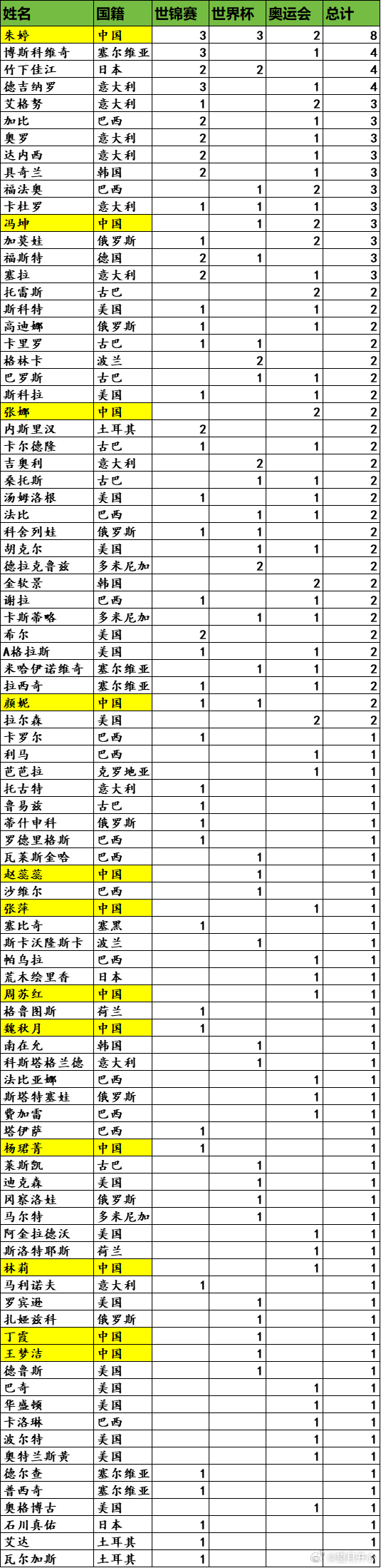 【2000-2025三大赛女排单项奖更新】2000年悉尼奥运会到2025泰国世锦赛,总共是7届奥运会、7届世锦赛、5届世界杯;154个单项奖;单项得奖人数最多的美国女排16人(23个奖);其次巴西14人(20个奖),中国女排12人(23个奖);意大利女排10人,但是拿到最多的24个奖项;个人方面单项奖方面:朱婷依旧是8个断层领先;博斯科维奇和德吉纳罗4个分别次席;艾格努、加比、奥罗、达内西、塞拉都是3个;世界女排新闻中国女排 东京后中国女排无人再次拿到单项奖,也无缘领奖台;奥格博古、瓦尔加斯、艾达、石川真佑是近两届大赛新的单项得主。