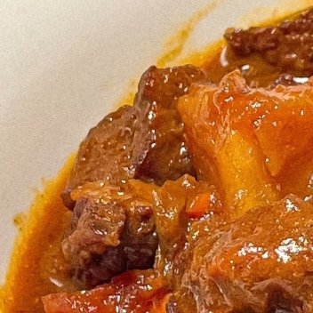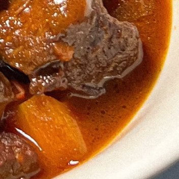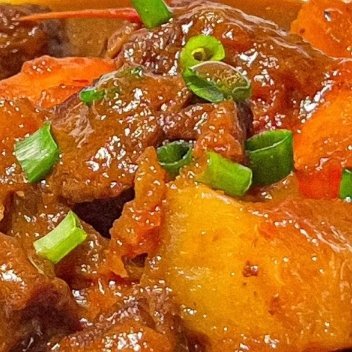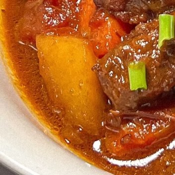 番茄牛腩所需食材牛腩、番茄、土豆、洋葱、葱姜、八角、桂皮、香叶、冰糖、生抽、老抽、料酒、盐、冰糖、番茄酱制作步骤1牛腩切成小块,冷水下锅,加入姜、料酒,焯水去腥,捞出洗净备用。2番茄顶部划十字,用开水烫一下,去皮切成小块。锅中倒油,放入冰糖,小火炒出糖色,加入牛腩翻炒上色。3放入半个洋葱番茄块翻炒。倒入没过食材的温水。再倒入(调料:两勺老抽,一勺生抽,两勺蚝油,香叶桂皮八角)盖上盖子炖煮90min4加入切好的土豆块,继续炖煮15min,直至土豆软烂,出锅~