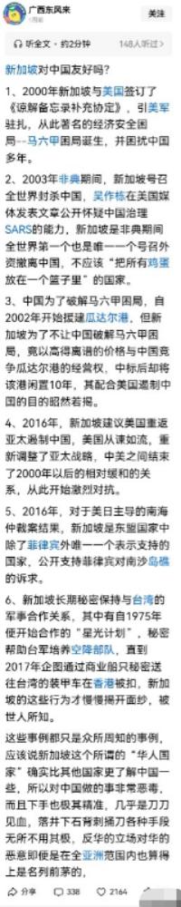 这些新加坡对中国的黑手,很多人估计视而不见,以前是没办法,现在是无所谓了。我们可以把它当成另一个立陶宛。   咱先掰扯掰扯新加坡的“好时候”是啥样。这国家最精明的地方,就是把“赚钱”俩字刻在骨子里,跟中国打交道的时候,那热情劲儿隔着屏幕都能感受到。就说苏州工业园区吧,1994年两国政府牵头搞起来的项目,三十年来从一片水田洼地变成了GDP三千多亿的“创新之城”。   新加坡当初把自己的城市管理、招商引资经验一股脑儿地搬过来,咱们也确实借这个机会学到了不少本事。可人家不是来做慈善的,这些年通过园区合作,新加坡企业赚走的利润、拿到的市场份额可一点不少。   数据摆着呢,2024年中新双边贸易额都到1111.1亿美元了,咱们连续12年都是它最大的贸易伙伴,它更是连续好几年稳坐咱们新增外资来源国的头把交椅。   除了苏州工业园,新加坡在“一带一路”上也没少蹭热度,中白工业园这种咱们对外合作的大项目,都是借鉴了苏州工业园的模式,这里面新加坡也跟着分蛋糕。   平时各种经贸论坛、合作峰会,新加坡领导人总能准时出现,张口闭口“中新一家亲”“共同发展”,那场面话说得比谁都好听。   可你要是真信了这种表面的热络,觉得它会跟咱们一条心,那可就太天真了。这新加坡的友好,从来都是附加条件的——只要能赚钱,怎么都好说;可一旦触及它所谓的“安全利益”,或者美国那边递个眼色,它立刻就换了一副嘴脸,从根儿上给你下绊子。 更有意思的是,新加坡一边喊着“不结盟”,一边却把美军当成自家安全的“靠山”,开放军事基地让美军驻扎,成了美国在东南亚的重要支点。这种“经济上靠中国,安全上靠美国”的两头下注,说白了就是把咱们当提款机,把美国当保护伞,算盘打得噼啪响。   还有台海问题,它嘴上说着坚持一个中国政策,不允许被“台独”利用,可暗地里却总跟台湾保持着说不清道不明的联系,时不时在国际场合放些模棱两可的话,试图在两岸之间捞取政治资本。   这也是为什么说,现在咱们对它的小动作“无所谓”——不是怕它,而是觉得没必要跟这种小体量国家置气,真要是闹僵了,它的损失比咱们大得多。   说到这,就不得不提立陶宛这个前车之鉴。这个欧洲小国当初非要往“台独”枪口上撞,允许台当局设所谓“代表处”,结果怎么样?   咱们一顿精准反制,它对华出口直接暴跌80%,百年乳企倒闭,最大的木材出口商只能迁到波兰求生,连欧盟都懒得为它出头,直接撤回了在世贸对咱们的诉讼。   新加坡现在的路子,跟当初立陶宛没跳墙前有点像,都是嘴上逞强,想在大国之间捞好处。但它比立陶宛更精明一点,知道哪些线不能碰,目前还只敢在南海问题上“口嗨”,没敢真的触碰台湾这根红线。   可精明不代表不会犯错,新加坡要是真以为咱们的容忍是软弱,敢效仿立陶宛触碰红线,那可就真是自寻死路了。它的体量比立陶宛大,但在国际格局里终究是个小城邦,国土面积就那么点,经济全靠转口贸易和金融,根本经不起折腾。   咱们要是真动起手来,不用搞全面制裁,光是调整一下航运政策、收紧市场准入,就能让它疼得满地打滚。要知道,2024年新加坡对华新增投资都106.9亿美元了,这些钱投进来可不是打水漂的,真要是关系闹僵,这些投资全得被套牢。   而且现在的国际形势也跟以前不一样了,立陶宛闹到最后,美国承诺的20亿美元援助只到账不到10%,欧盟更是直接把它当弃子。新加坡要是真敢挑衅咱们,美国大概率也只会给它画个大饼,不可能真的为它出头。   咱们现在把它当成另一个立陶宛,不是说要主动找它麻烦,而是要亮明态度:合作可以,但必须守规矩;赚钱欢迎,但不能背后捅刀。   以前咱们可能还会顾及“华人情谊”“合作大局”,对它的小动作多有包容,现在咱们真的无所谓了。你愿意好好合作,咱们就一起赚钱;你要是非要搞小动作,甚至触碰红线,那咱们也不介意让它尝尝立陶宛的滋味。   说到底,国家之间的交往,实力才是硬道理。新加坡以前能靠着“大国平衡”左右逢源,是因为咱们还在发展阶段,需要稳定的外部环境。   现在咱们已经是世界第二大经济体,有足够的底气和实力维护自己的利益,再也不用看小国家的脸色。新加坡要是识相,就该收收那些小心思,踏实实做生意;要是真敢触碰高压线,那等待它的,只会是比立陶宛更惨的结局——毕竟,没人会惯着“两面派”的臭毛病。