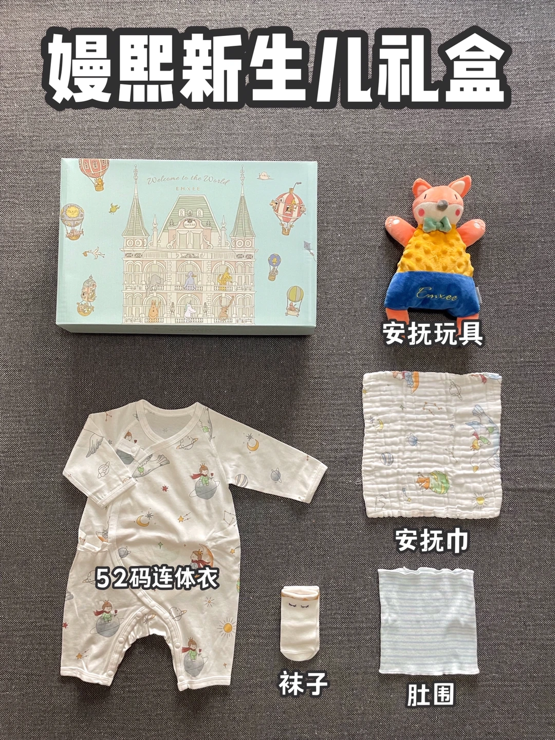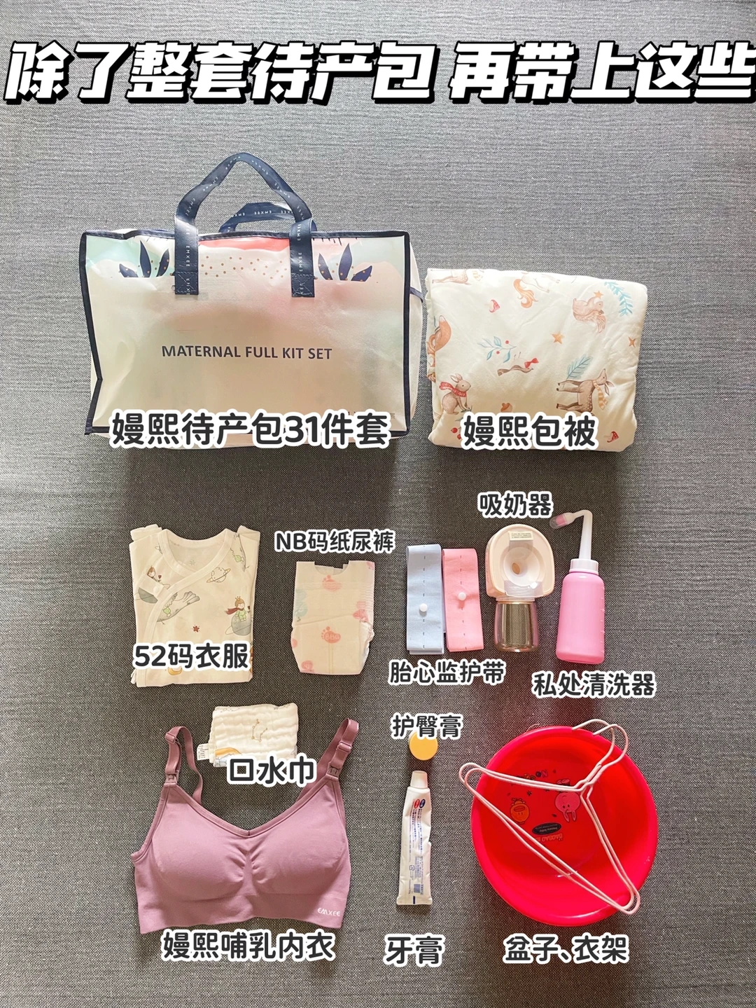 👉提示:我的囤货想法是,先入成套的待产包,再补充其余的东西,避免东西重复买。我的是嫚熙待产包31件套,性价比高,配比科学,到月子里基本都用完了。还赠送了一个高颜值新生儿礼盒,里面有宝宝连体衣、口水巾 、肚围、袜子、安抚玩偶、小卡片和孕妈手册🧸自用送人都很合适!