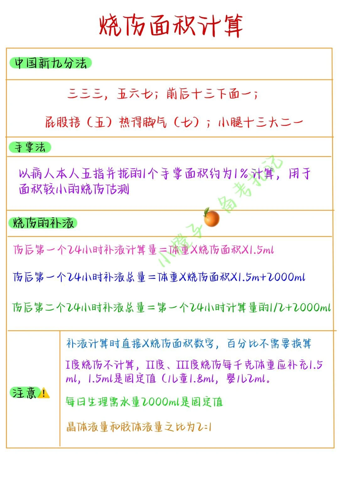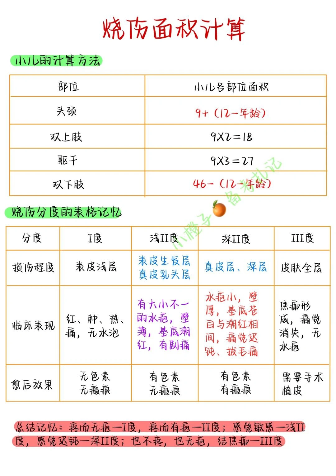 🌟今日笔记分享烧伤面积计算🙋 🌈中国新九分法 三三三、五六七;前后十三下面一;屁股捂(五)热得脚气(七);小腿十三大二一。 ………………………………………… 🌈下期再见啦