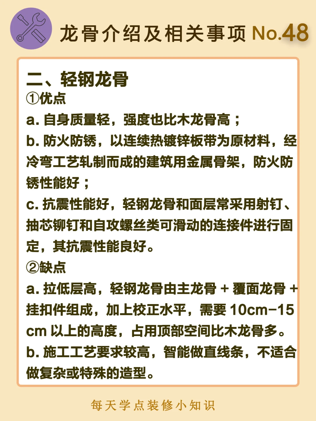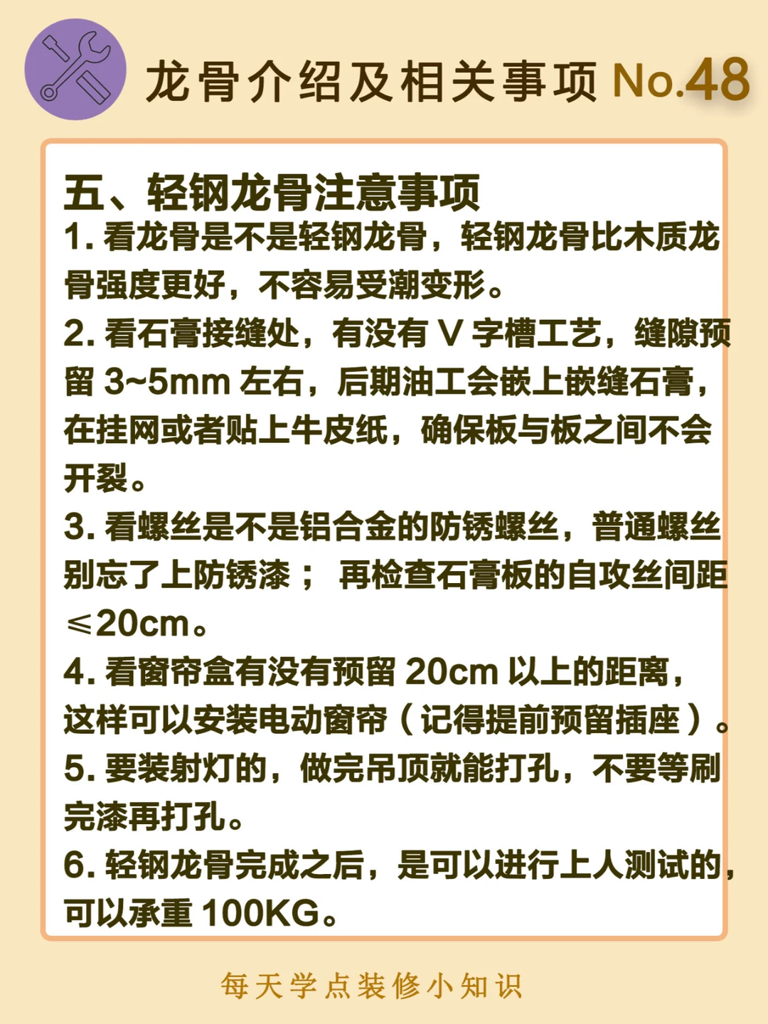 五、轻钢龙骨注意事项
