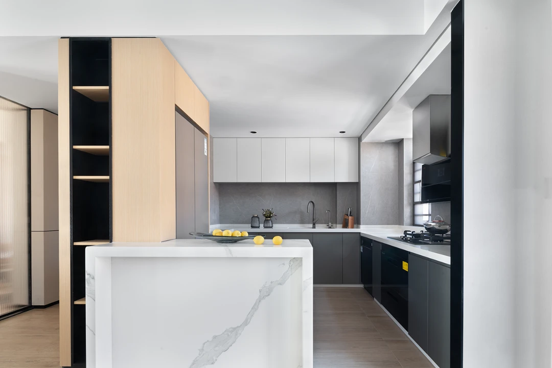 120㎡开放厨房+岛台设计,极致简约现代美感