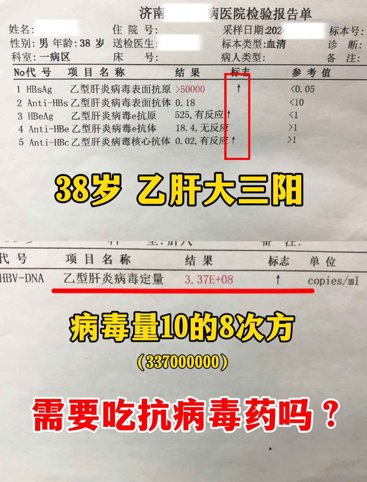 38岁正是上有老下有小的年纪,肝脏不能出问题!10的8次方意味着病毒在...