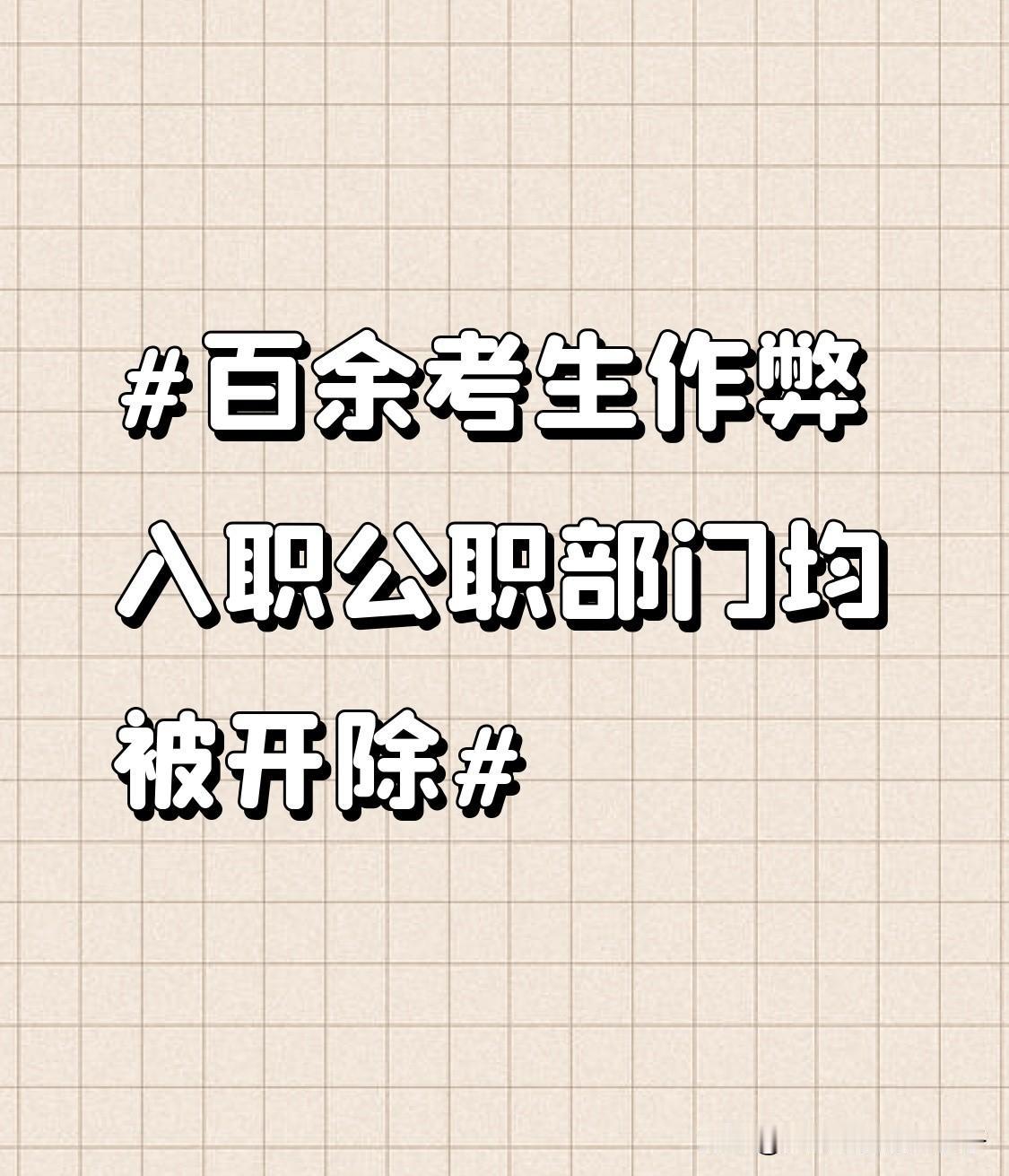 百余考生作弊入职公职部门均被开除 百余考生作弊入职公职部门均被开除,这事儿真是大快人心!2014 - 2020 年,张某洁等一伙人组织高学历“枪手”跨十余省市替考,涉案超千万。他们给考生提供“一条龙”服务,合成照片制作假证,让“枪手”利用验核漏洞替考 89 次,还在其他考试多次作弊。这些考生以为靠作弊就能蒙混过关进入公职部门,太天真了。如今他们被开除,全链条犯罪人员也受严惩,这就是公平正义的体现。公职考试容不得半点舞弊,踏实努力才是正道。