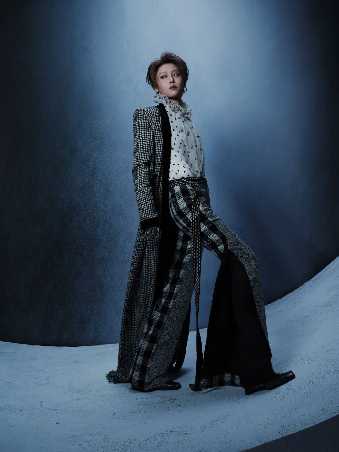 刘雨昕头顶了个扇子 今晚参加爱奇艺尖叫之夜的造型美学好像自带叙事感!扇子形态礼帽解构复古意象,千鸟格长风衣的经典纹路碰撞脸颊细碎雀斑,东方元素的灵动与西式剪裁的利落相融,慵懒氛围中透着先锋态度,每一处细节都藏着巧思。