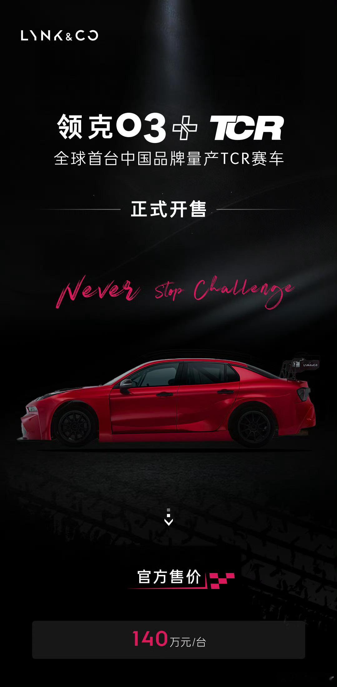 领克也有超过百万的车卖了!全球首台量产中国品牌TCR赛车,售价140万。帅不帅?
