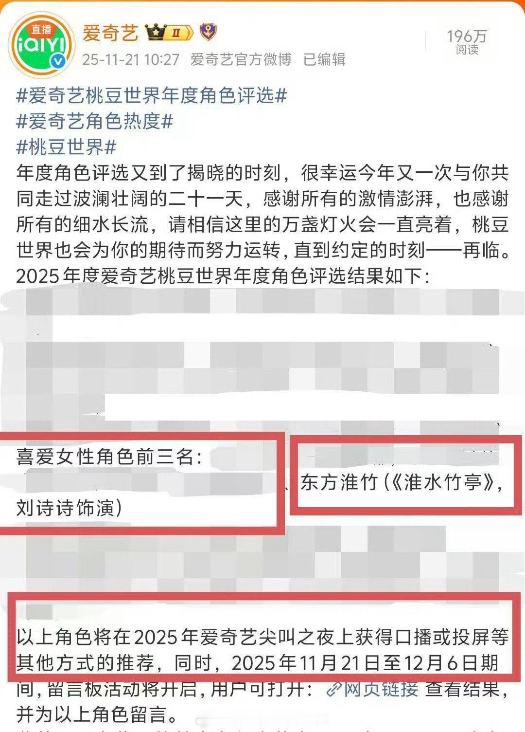 尖叫之夜 无聊我觉得爱奇艺应该知道自己今年无聊了,白鹿放出来成了最大流量。先是跟杨幂双C,然后就是把该给刘诗诗《淮水竹亭》的年度喜爱电视剧女性角色,给了白鹿《临江仙》,白鹿今天背起了所有。