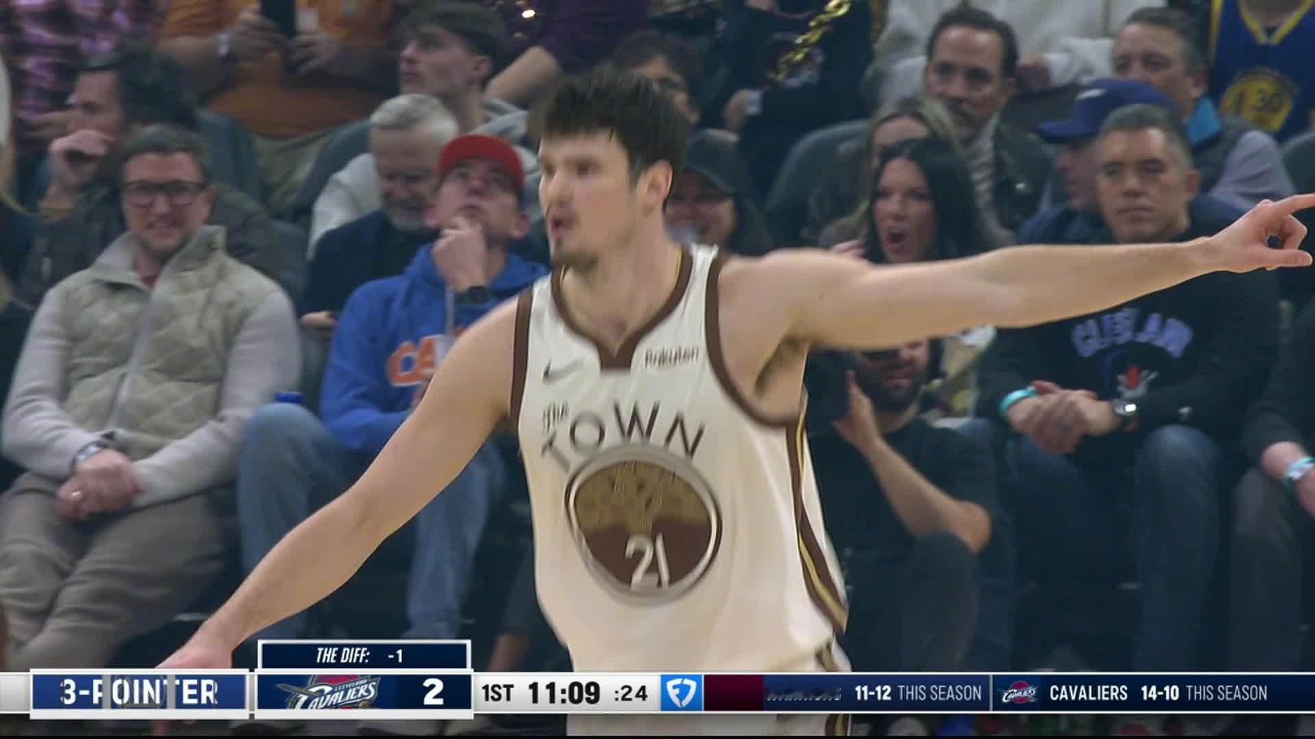 波奇姆斯基远投三分!勇士34:29骑士。勇士vs骑士