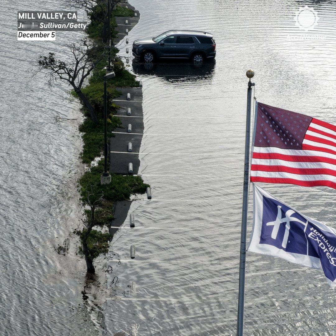 新闻快讯——特大潮汐侵袭加利福尼亚州沿海地区,海水漫上街道、步道及停车场——湾区周边低洼地带遭遇本年度最高潮汐之一引发的洪水。