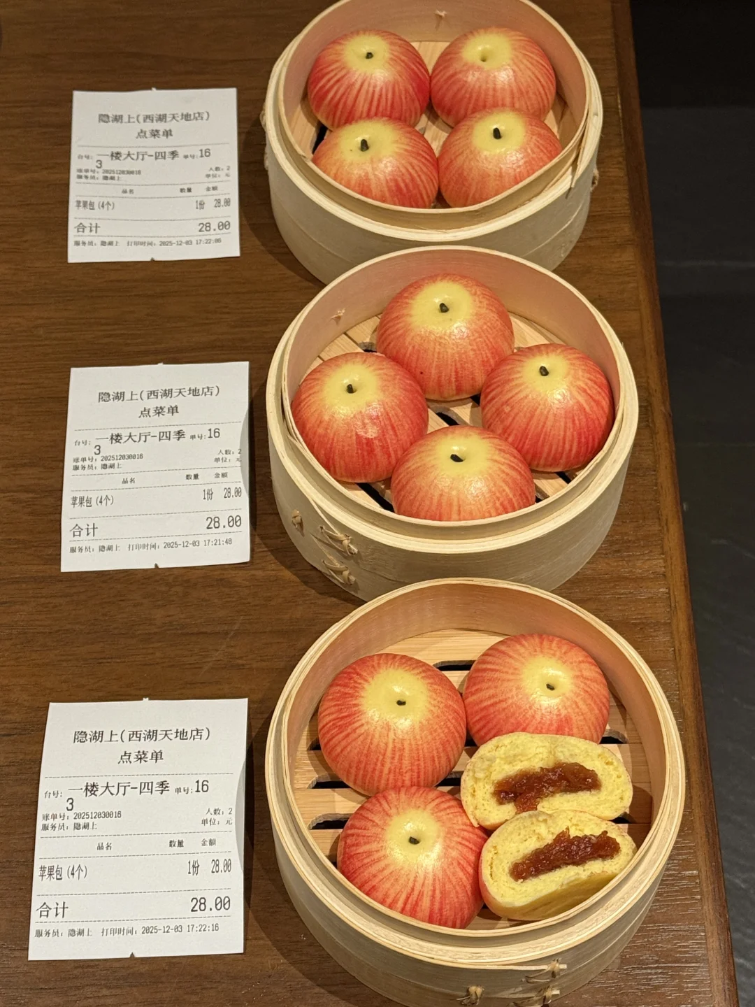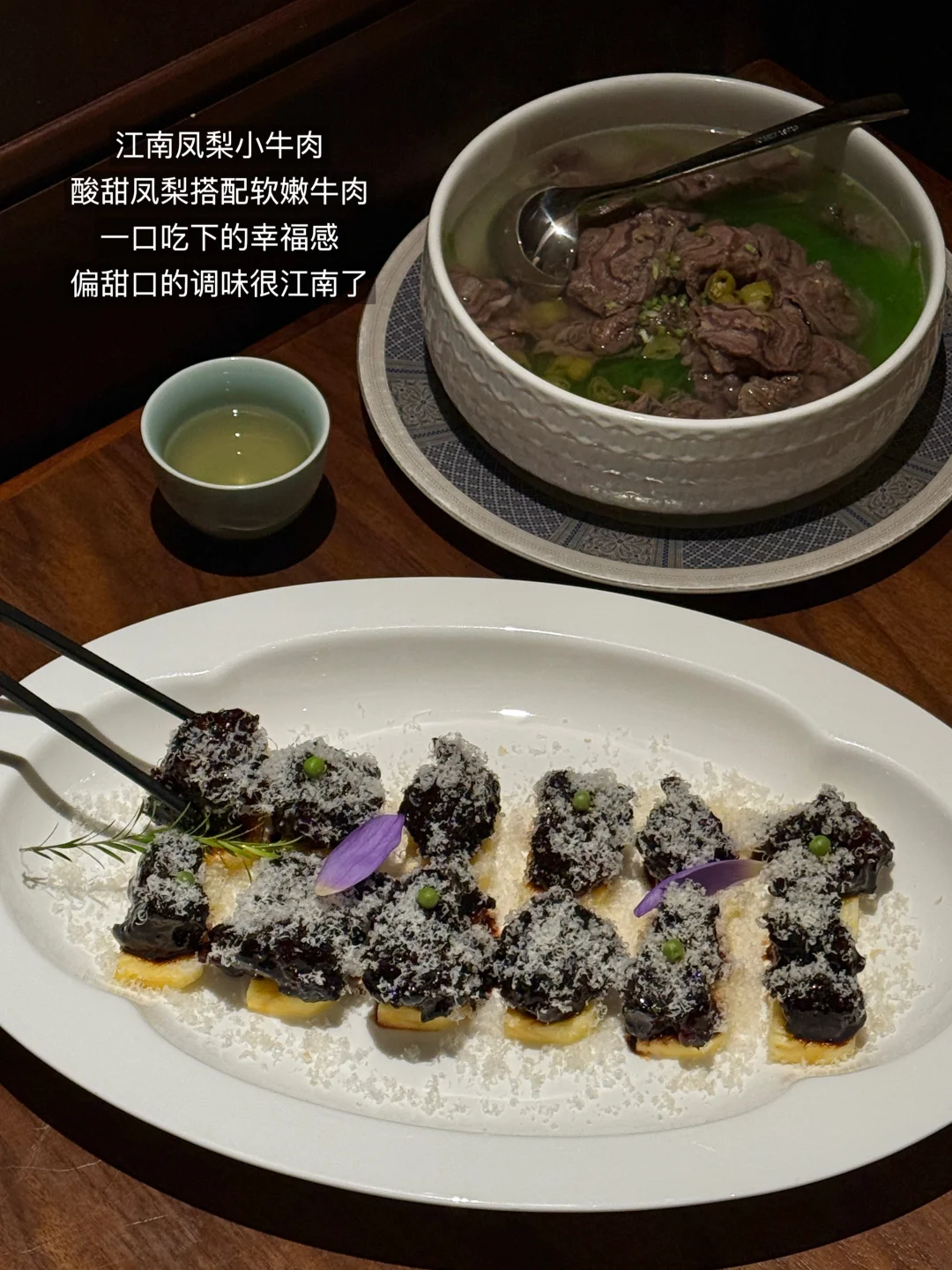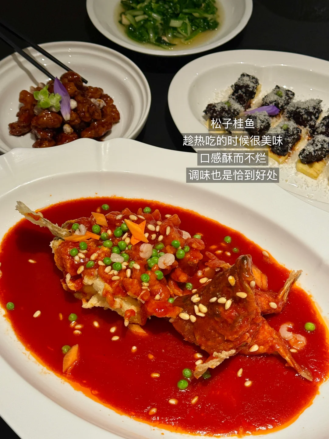 做得好逼真的苹果包!! 两口一个,软软的,里面是酸甜苹果酱馅!吼吼次! 还有蘑菇包也好像🍄!豆沙馅带点巧克力味 西湖边很有sense的江南餐厅🍂 口味更是黑珍珠平替,个人超爱江南凤梨小牛肉和泉水牛腱 糖醋里脊更是一绝!!!在我心中可以排前三! 带朋友或者家庭聚餐闭眼点不会出错…谢霆锋都打卡过的!