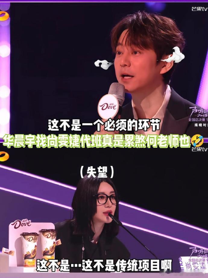 尚雯婕代班累坏何老师 本以为换个导师能让何老师歇会儿,结果尚雯婕全程提问不停,又是问节目类型又是点歌,何老师直接不愿面对,魔丸考核名不虚传~声鸣远扬