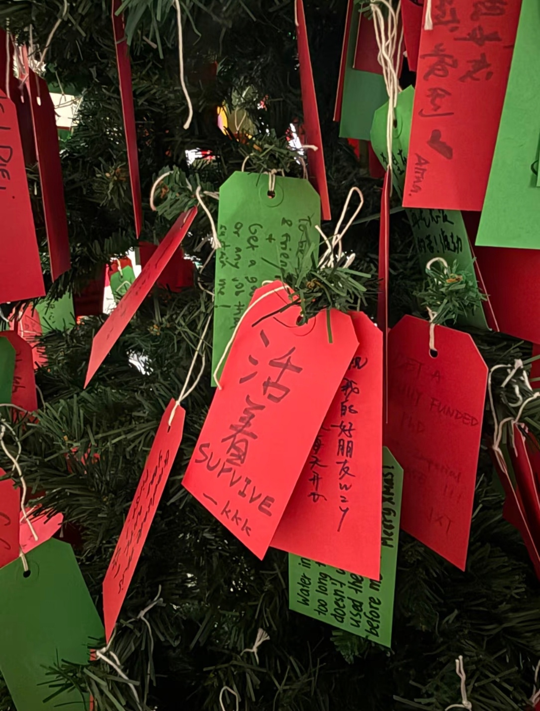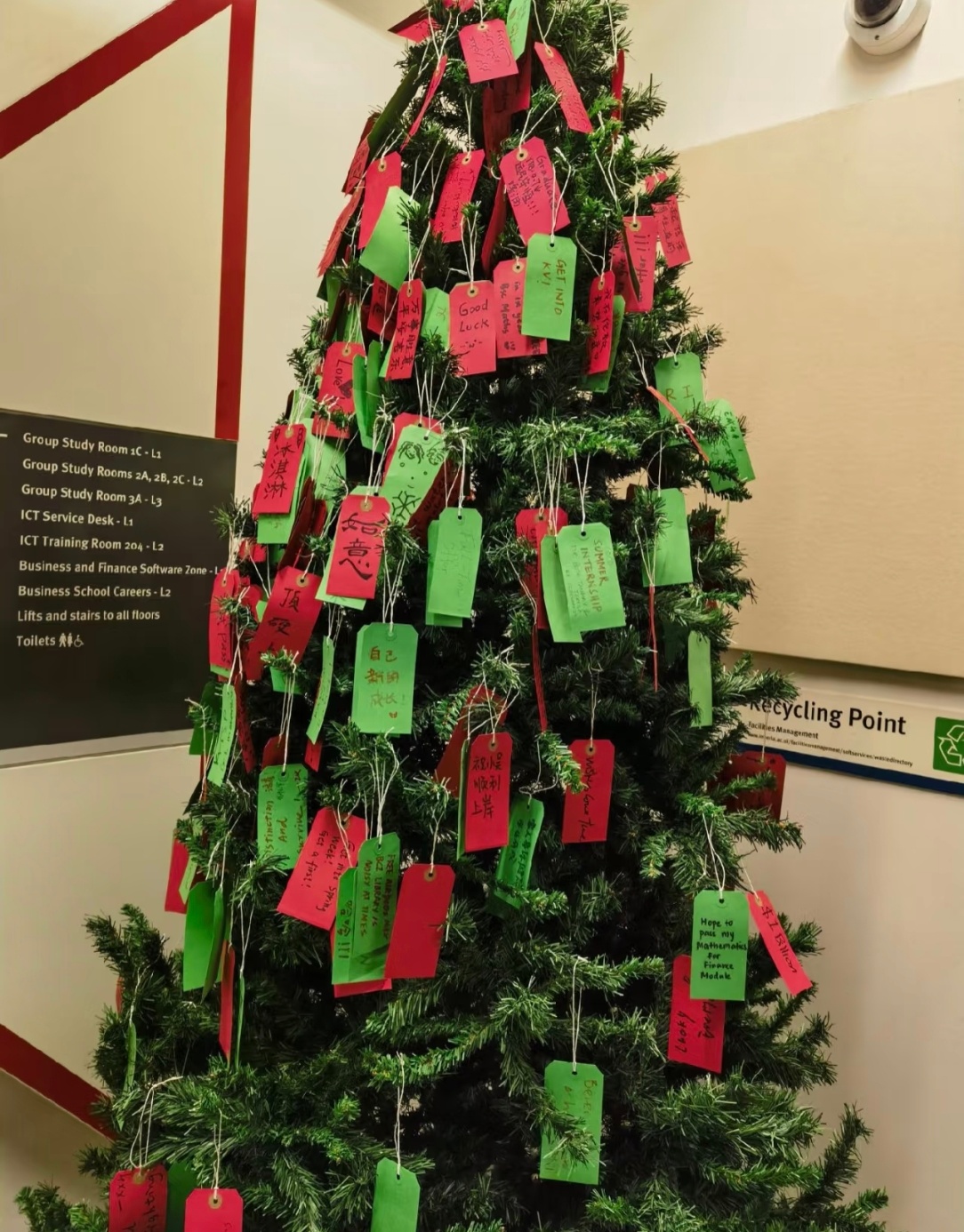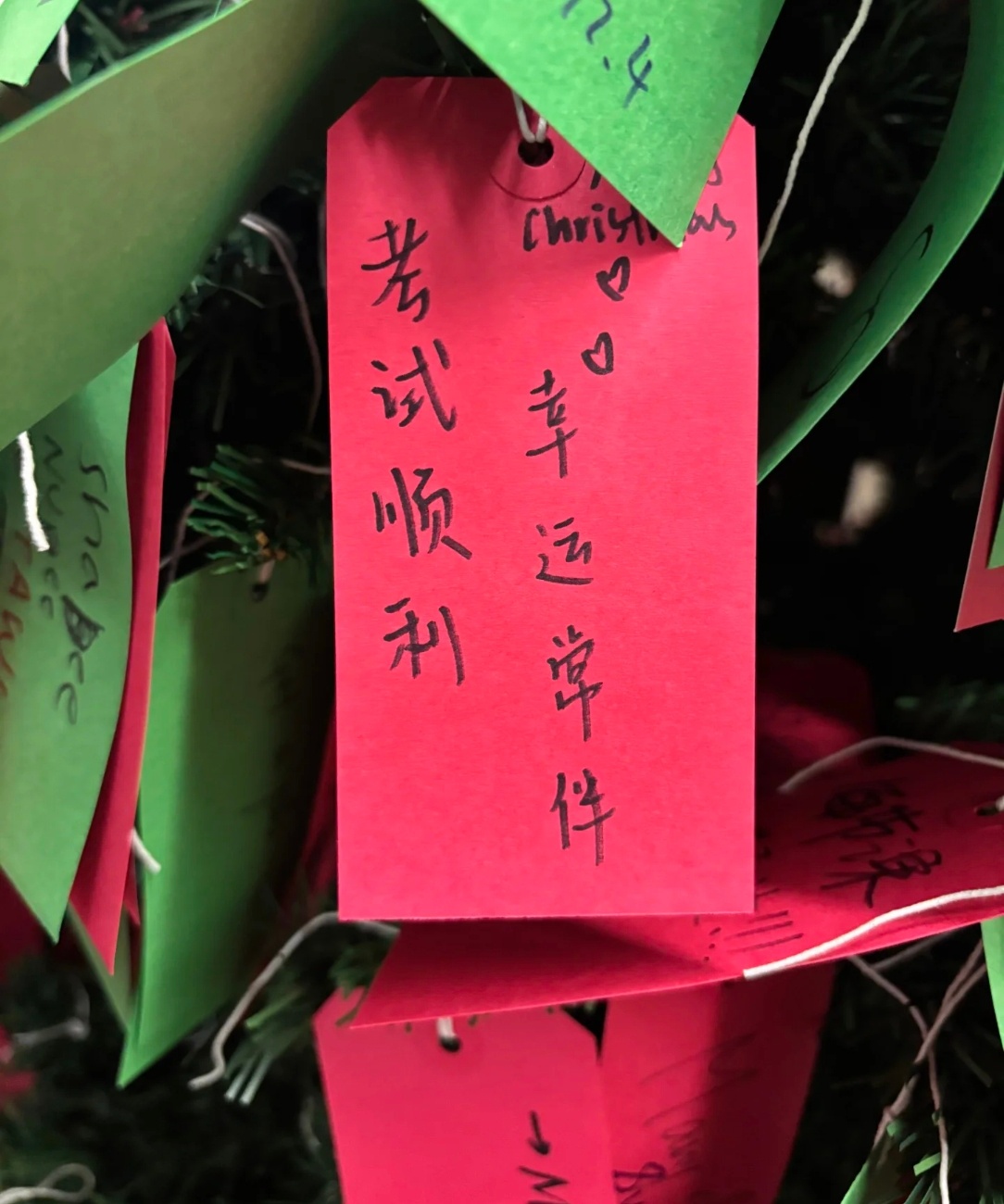 留学生互认这一块刚好圣诞季和考试季撞在一起了在圣诞树上除了考试祝福外甚至还能看到