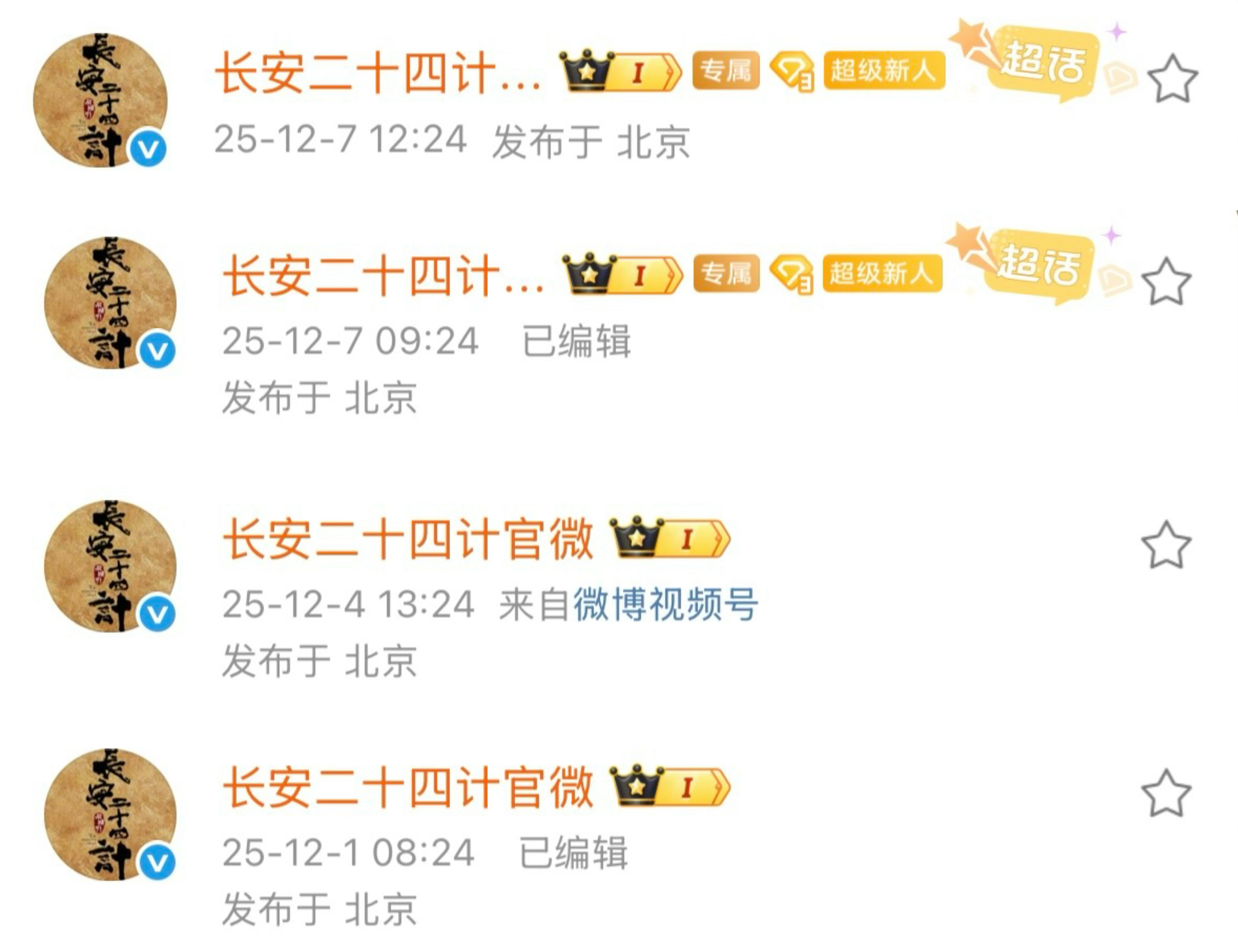 长安二十四计在数字这块有点说法 怎么还没开播这剧就已经开始让我小脑瓜动起来了?不得不说长安二十四计在数字这块真是有点说法嗷~不仅开播定在12月12日,加起来二十四整整好贴合剧名,而且官微平时发物料也是卡点24分狂魔,就连释出的物料图都能对应二十四节气!好好好,既然长安二十四计 这么肯为朕费心思,那1212我将准时上线去👖追更!!
