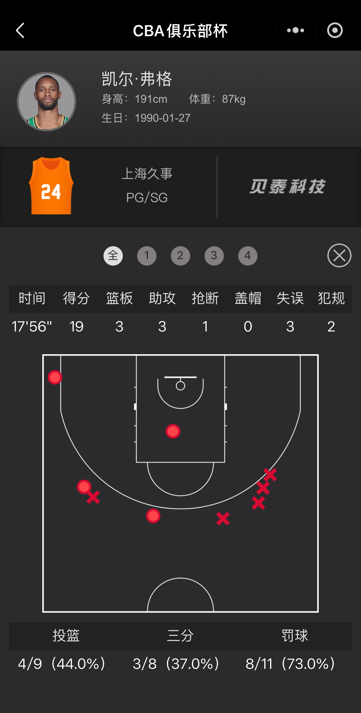 杯赛上海队战胜NBL香港金牛晋级八强弗格上海队第三战依旧高效出场18分钟得到19分3篮板3助攻1抢断金金上海队首秀出场15分钟4中3得到6分6篮板2封盖1助攻