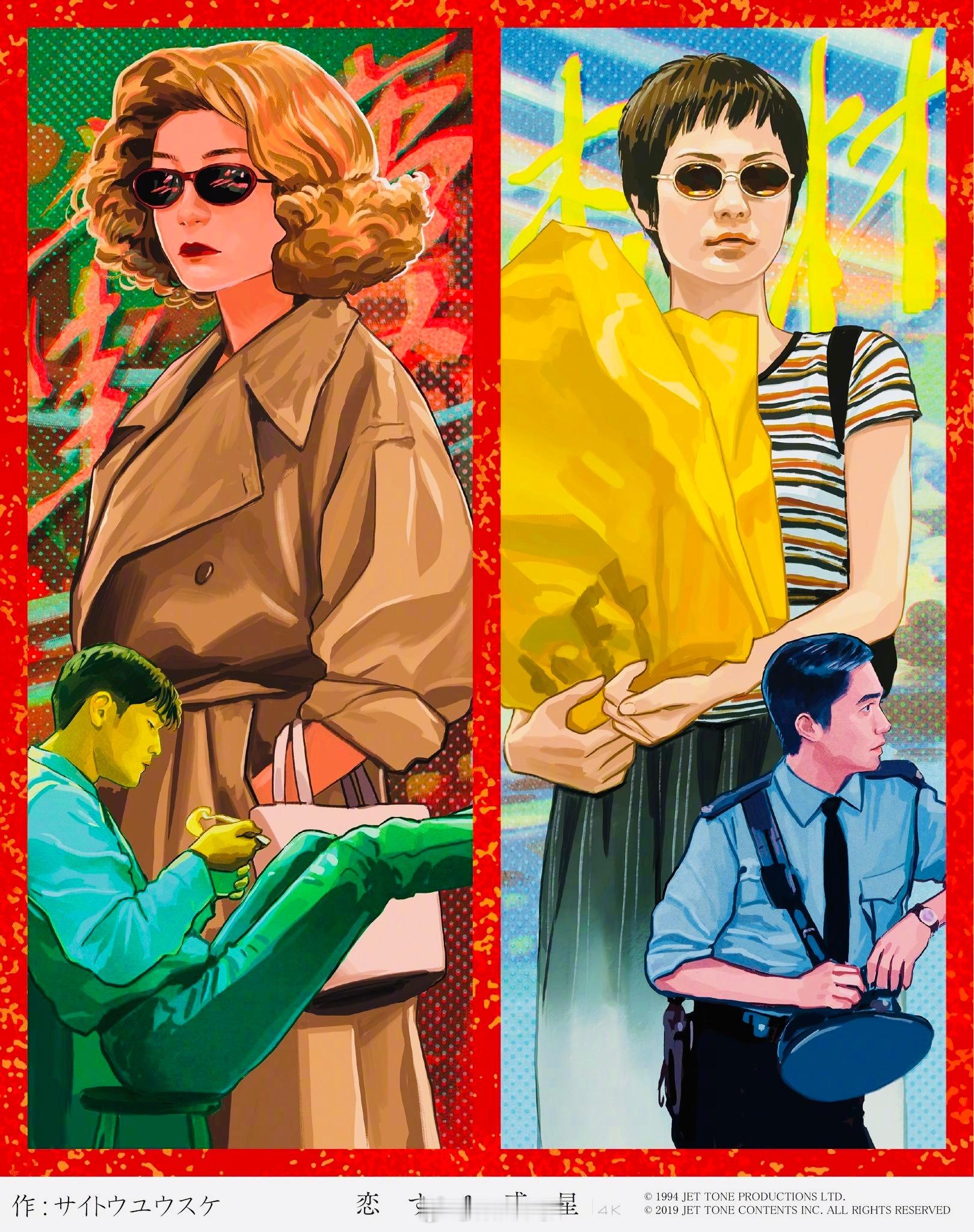 香港电影跨年电影愿 2023年,王家卫导演的5部电影,在日上映全套4K修复版,当时请本土插画师,绘制了5幅风格不同的艺术海报王家卫 ,手绘风太赞了——林青霞、金城武、梁朝伟、王菲【重庆森林】;黎明、李嘉欣、金城武、杨采妮、莫文蔚【堕落天使】;张国荣、梁朝伟【春光乍泄】;张曼玉、梁朝伟【花样年华】;梁朝伟、王菲、巩俐【2046】。
