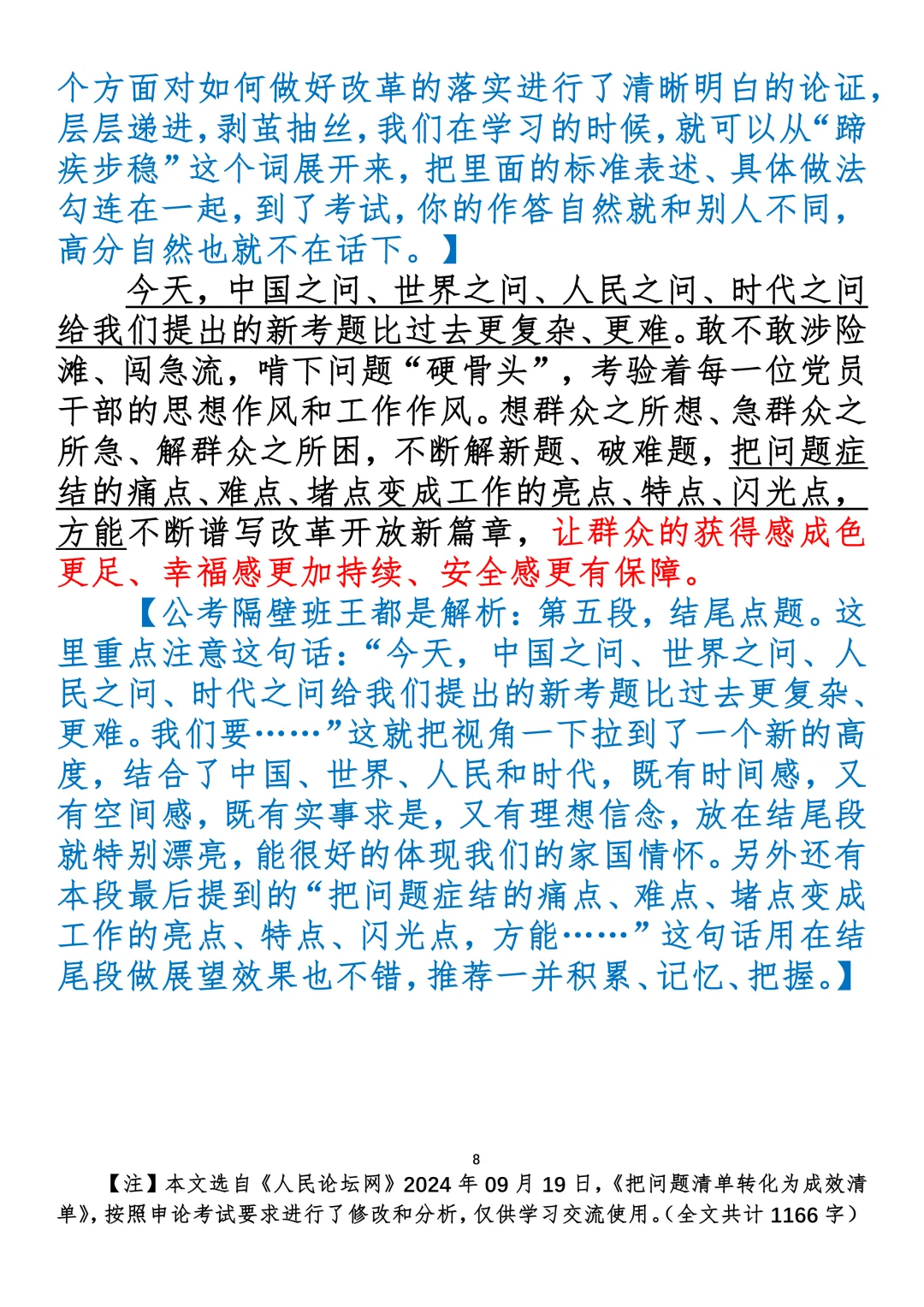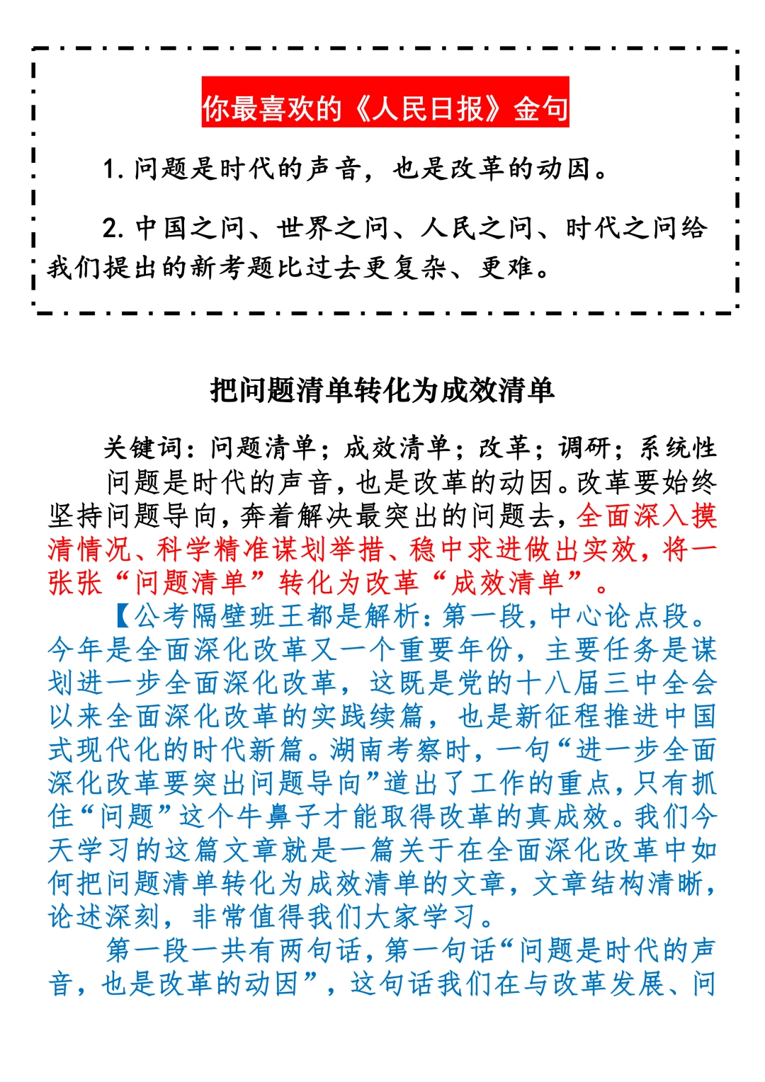 如何抄写:每日抄写文章发在“公考隔壁班王老师”账号,红色字是重点句和结构句,黑色字是正文,蓝色字是解析,大家抄写时不必抄蓝色字。建议先通读全文,做到心中有数再开始抄写,效果会更好。 关于文章:抄写文章来源于人民日报,但每篇文章我都根据申论考试要求进行了修改:一是重写或修改开头、结尾;二是统一段首句句式结构;三是调整段落字数,使文章结构更均衡;四是简化复杂长难句,使之更具可模仿性。每篇文章无论修改多少,都是基于申论考试要求,毫无对人民日报文章品评之意。(此处致敬人民日报)