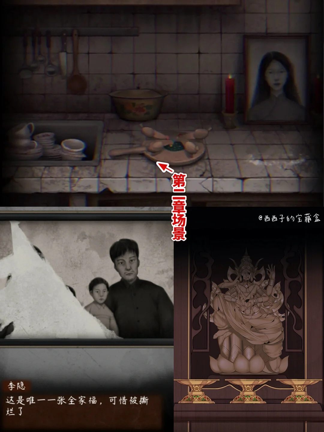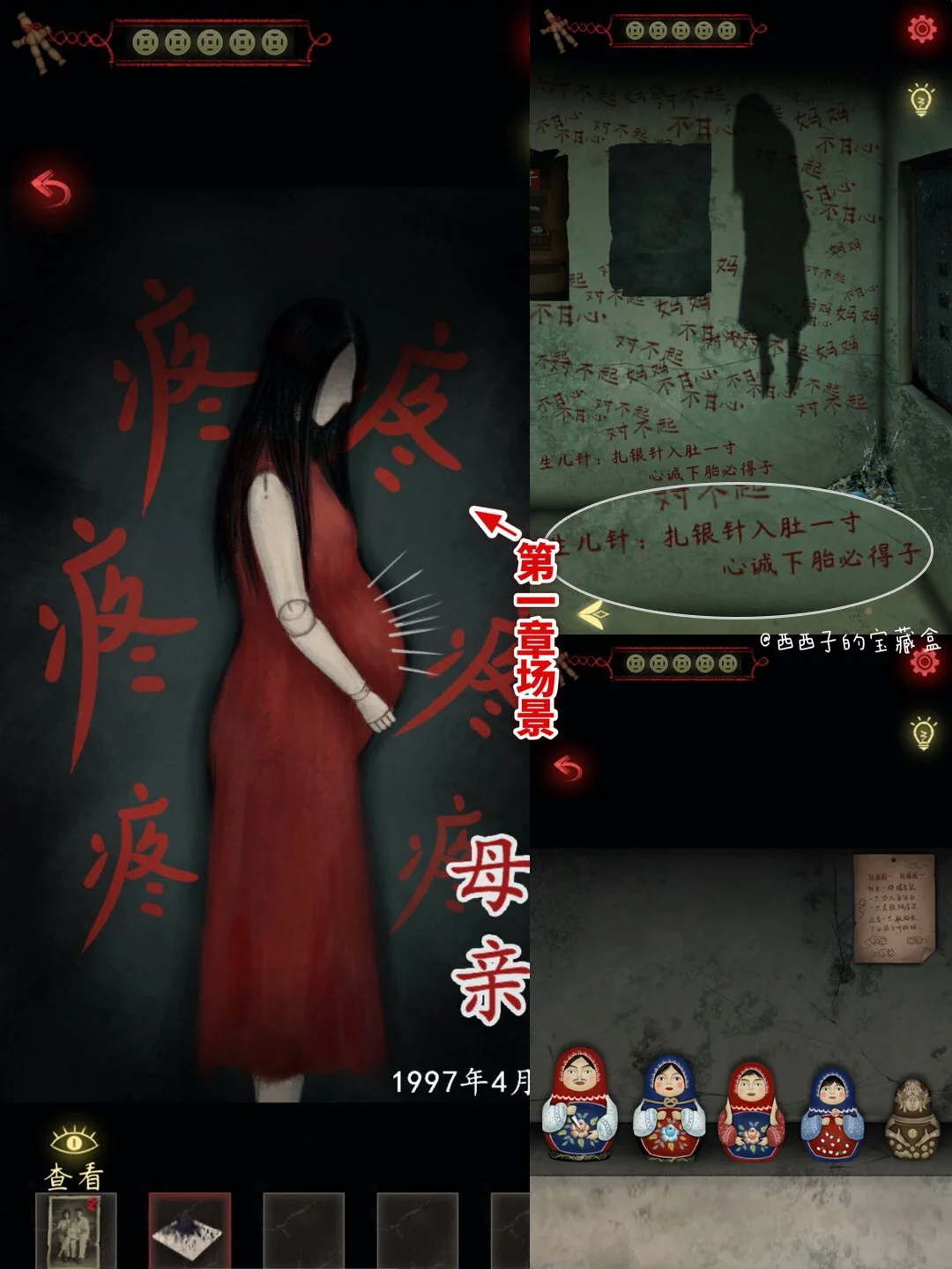 特别是妈妈那一幅画,[惊恐R]一开始肚子上是没有针的,后面扎满了银针,感觉这里应该是故事的一个重要埋点。