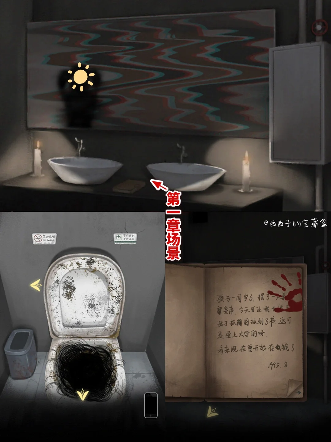随着解开游戏谜题会陆续出现的🥚红鸡蛋,男主一家三口的照片,镜子里的黑影,👋日记本上的红手印都透露着无比诡异~