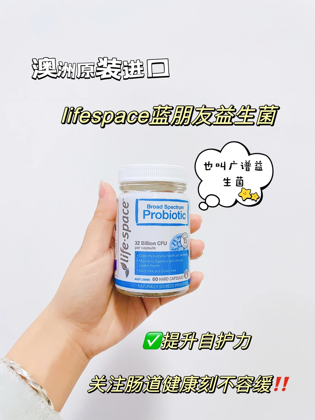 ❤️幸亏我有澳洲原装进口的【lifespace蓝朋友益生菌】,也叫广谱益生菌,已经空瓶好几罐了,一开始我选益生菌的时候就是看中专业的大牌子,这款益生菌有15种有益菌株,每一种菌株都有自己独特的“本领”[飞吻R]