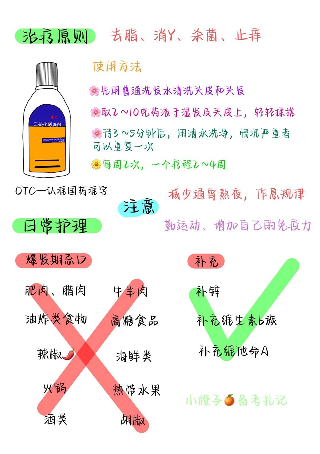 🍀治疗原则:去脂、消Y、杀菌、止痒