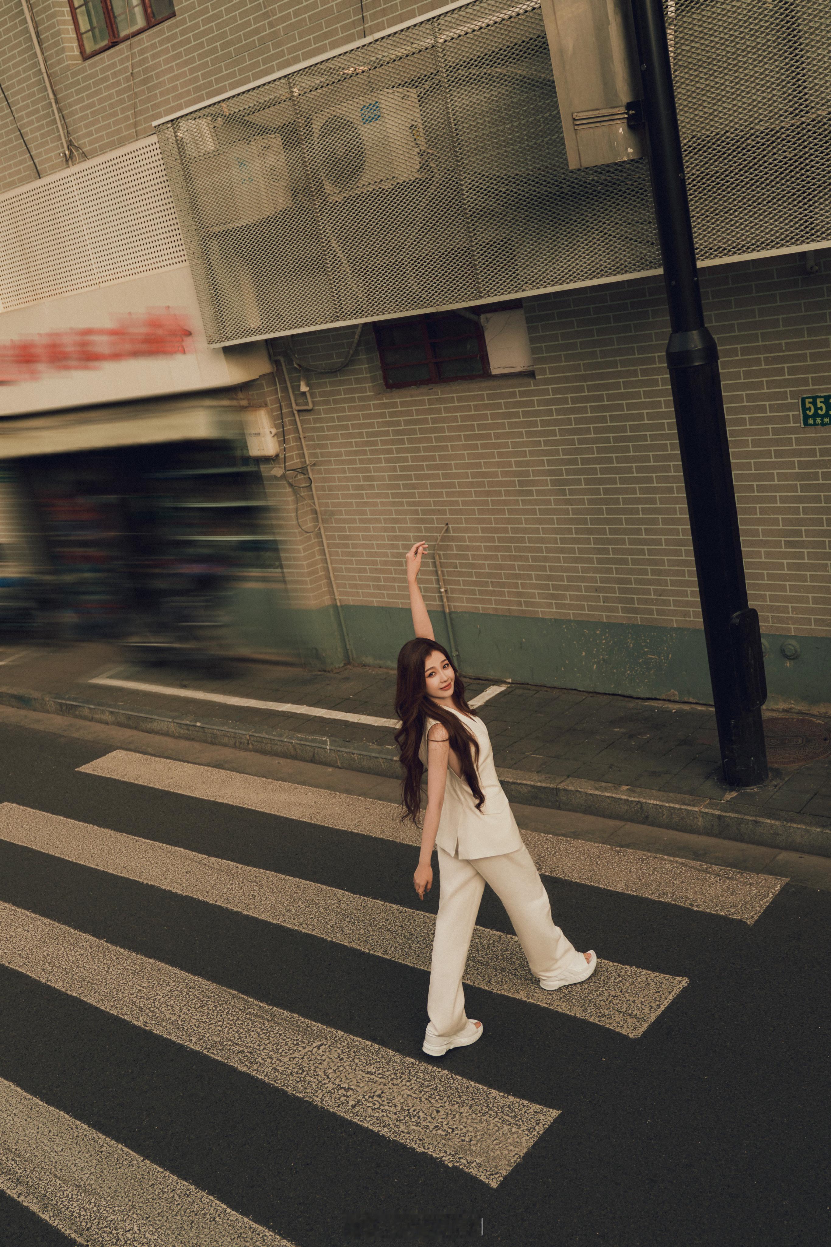 吴艳妮在成都穿着短裤大腿看起来很粗壮,表情自信又张扬