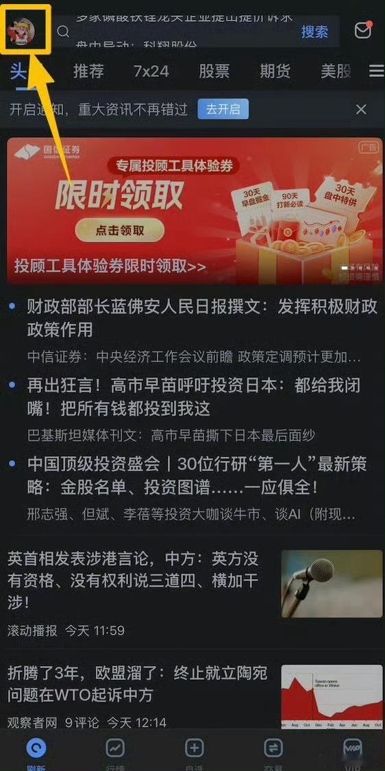1、微博内访问链接>>上证指数。2、打开链接后,截图(图一),点击图一顶部位置进行下载。3、下载新浪财经并登录,点击左上角头像(图二)。4、进入个人信息页,截图(图三)。
