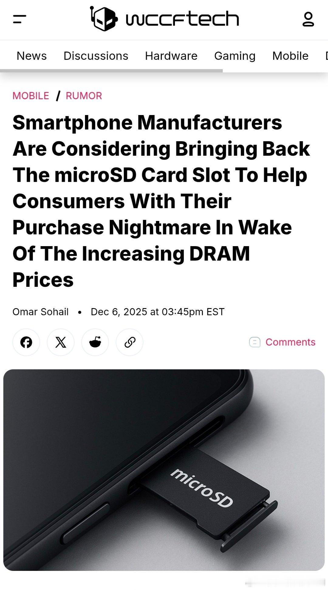 这波存储上涨真的没完没了,已经开始有智能手机制造商正考虑重新引入microSD