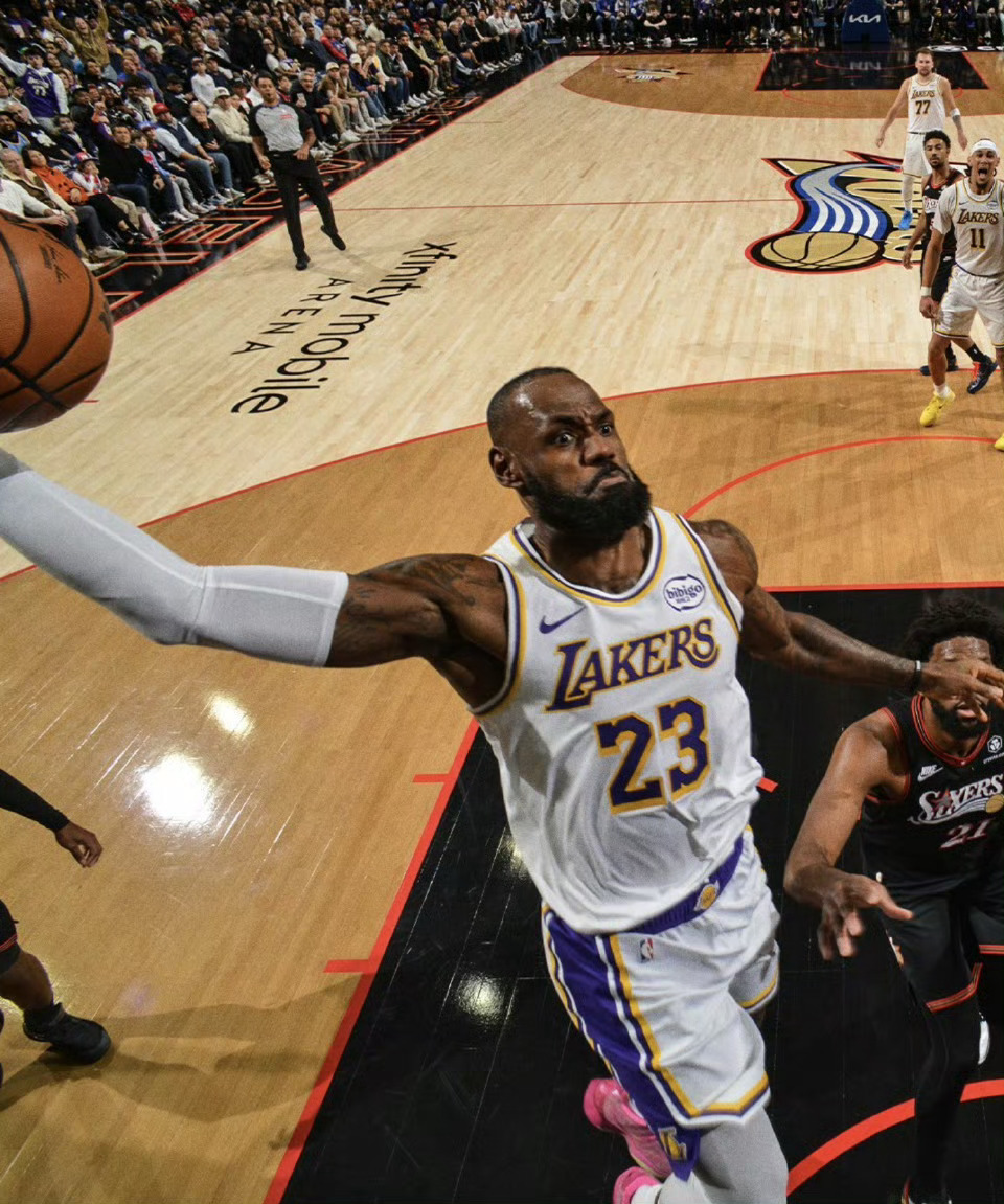 全场比赛结束,湖人112-108战胜76人!詹姆斯状态拉满!东契奇拿下32分15篮板11助攻,詹姆斯29分7篮板6助攻,里夫斯11分4篮板5助攻!湖人vs76人洛杉矶湖人