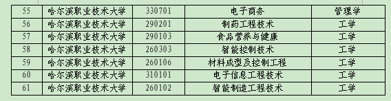 祝贺哈尔滨职业技术大学!祝贺以上新增学士学位授予专业的高校!