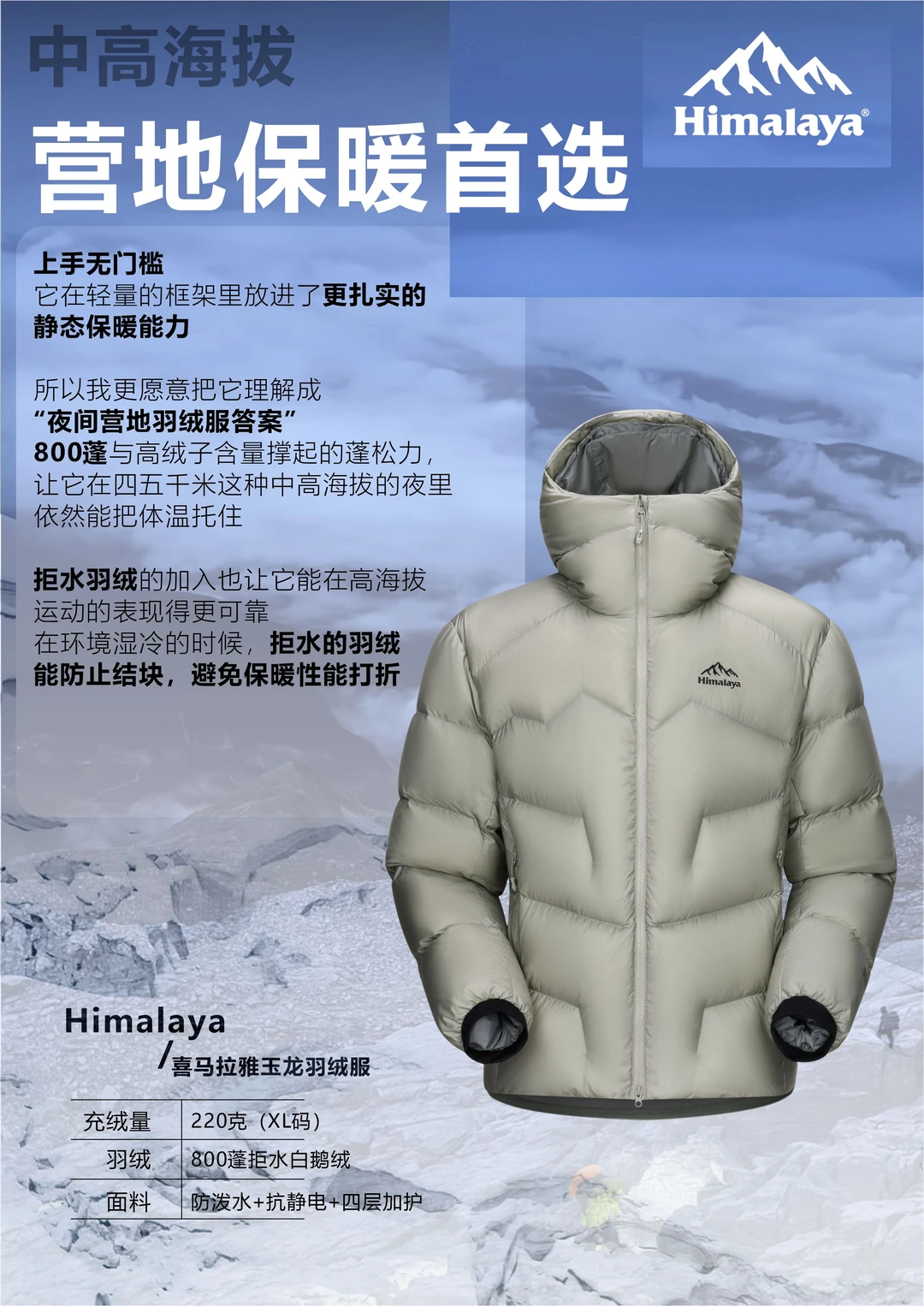 🗻喜马拉雅玉龙羽绒服:中高海拔营地保暖首选