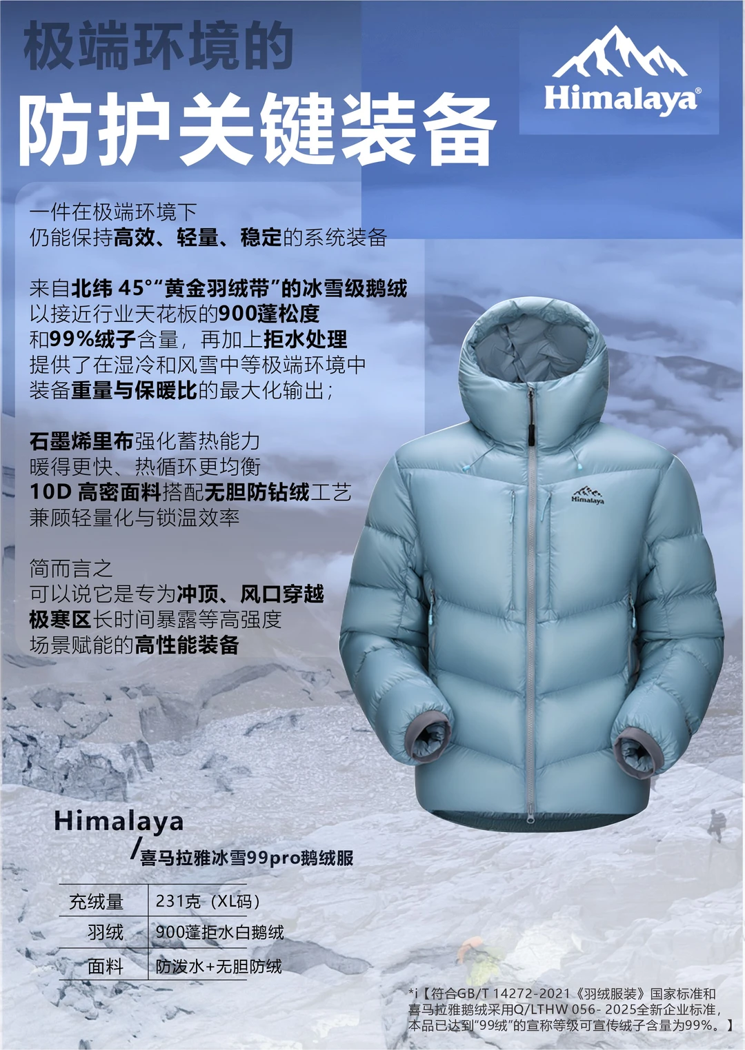 🗻喜马拉雅冰雪99 PRO鹅绒服:极端高海拔与极地探险的专属装备