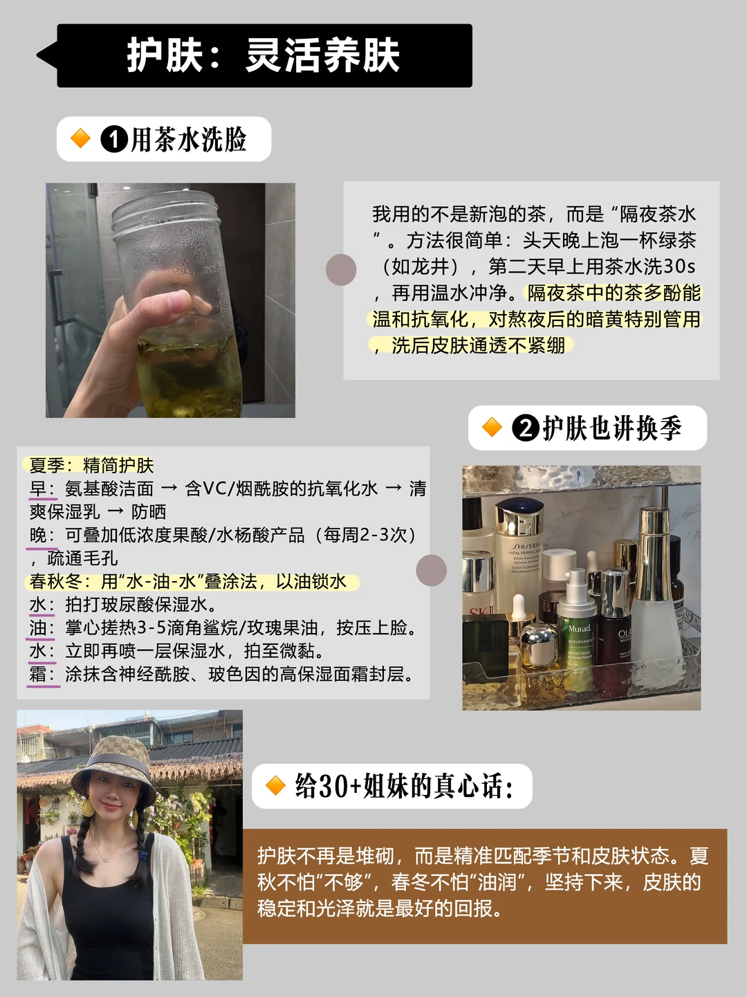 跟着曾黎学的,用隔夜茶水洗脸,尤其熬夜后洗去黄气很管用