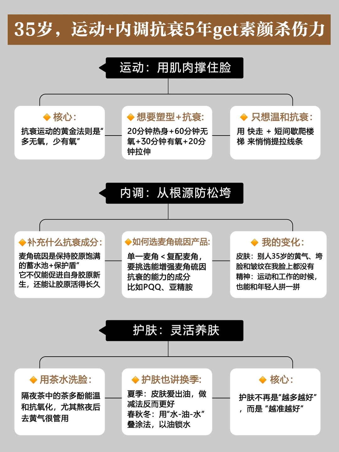 五年前,我也是个从零开始的小白。慢慢学运动、研究内调抗衰,五年过了,曾经蜡黄松垮的皮肤变得红润又紧致,游泳圈也被马甲线取代,收获的不只是素颜直出的勇气和自信,更是那份不被年龄定义的底气