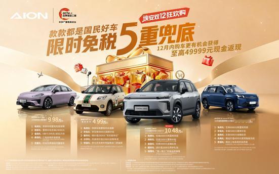 限时免税5重兜底:广汽埃安双12开启年末“抄底”盛宴。新能源车置换国补即将落幕,购置税全免也进入最后倒计时,明年将减半征收。市场的不确定性陡增,消费者面临“明年买车可能会多花钱”的焦虑。政策变动带来的紧迫感,加速强化了双12正是年底入手心仪座驾黄金时机的信号。 新能源领军企业广汽埃安,率先启动“埃安双12狂欢购”,以高品质国民好车,叠加行业首个“限时免税5重兜底”,为消费者送上“定心丸”。不仅承诺购置税兜底、提供丰厚礼包,更有购车抢至高49999元现金返现超级福利,堪称年末不容错过的“抄底”良机,让家庭用户省钱省心把爱车开回家。广汽埃安此次双12大促,全方位满足消费者的购车需求。年末购车热潮已至,抓住这波“政策末班车”与“品牌钜惠”叠加的双重红利,尽早将心仪已久的国民好车开回家,解锁绿色智能出行美好旅程。