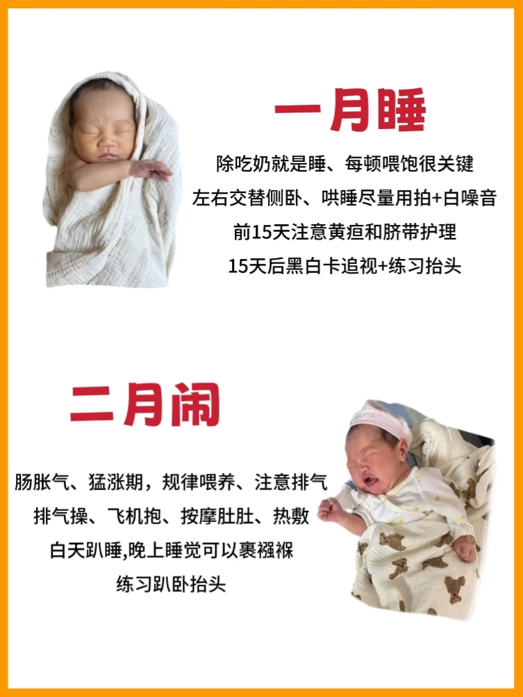 新手爸妈带娃是真的不知道从何下手,我也是从那个阶段过来的。上面干货图把宝宝每个月重点需要如何关注什么罗列出来了,可以参考。