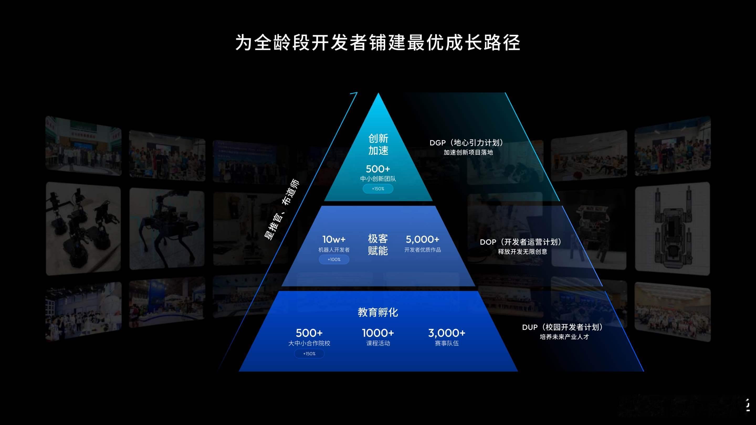2025地平线技术生态大会 余凯表示,地平线同样致力于培育广阔的开发者生态。目前已汇聚全球影响力,业务触达北美、欧洲、亚太等区域的20多个国家和地区,覆盖超10万的开发者,通过15家以上的海外渠道拓展市场。同时,地平线着力为全年龄段开发者铺就优质成长路径,通过教育孵化、极客赋能、创新加速培养未来产业人才 人人都是中国智驾合伙人