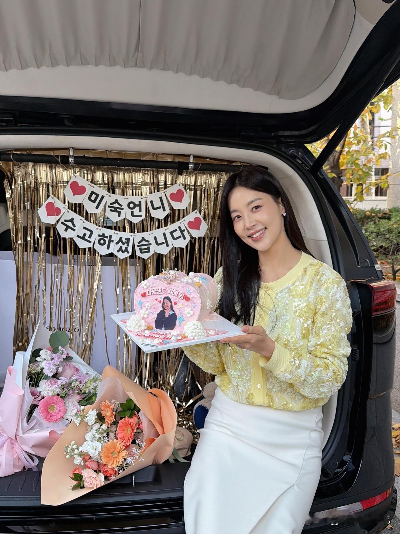 1日,演员韩智惠在Instagram上传了多张照片,并配文:“新的YouTube视频上传啦!记录了我忙碌的一天拍摄过程。从准备早餐、吃饭、拍摄到下班后的日常生活,所有环节都记录了下来,请大家多多关注!” 公开的照片中,韩智慧从工作人员手中接过蛋糕,庆祝拍摄结束,并拍摄了纪念照。身穿黄色开衫和白色裙子的韩智慧散发出纯真可爱的气息。