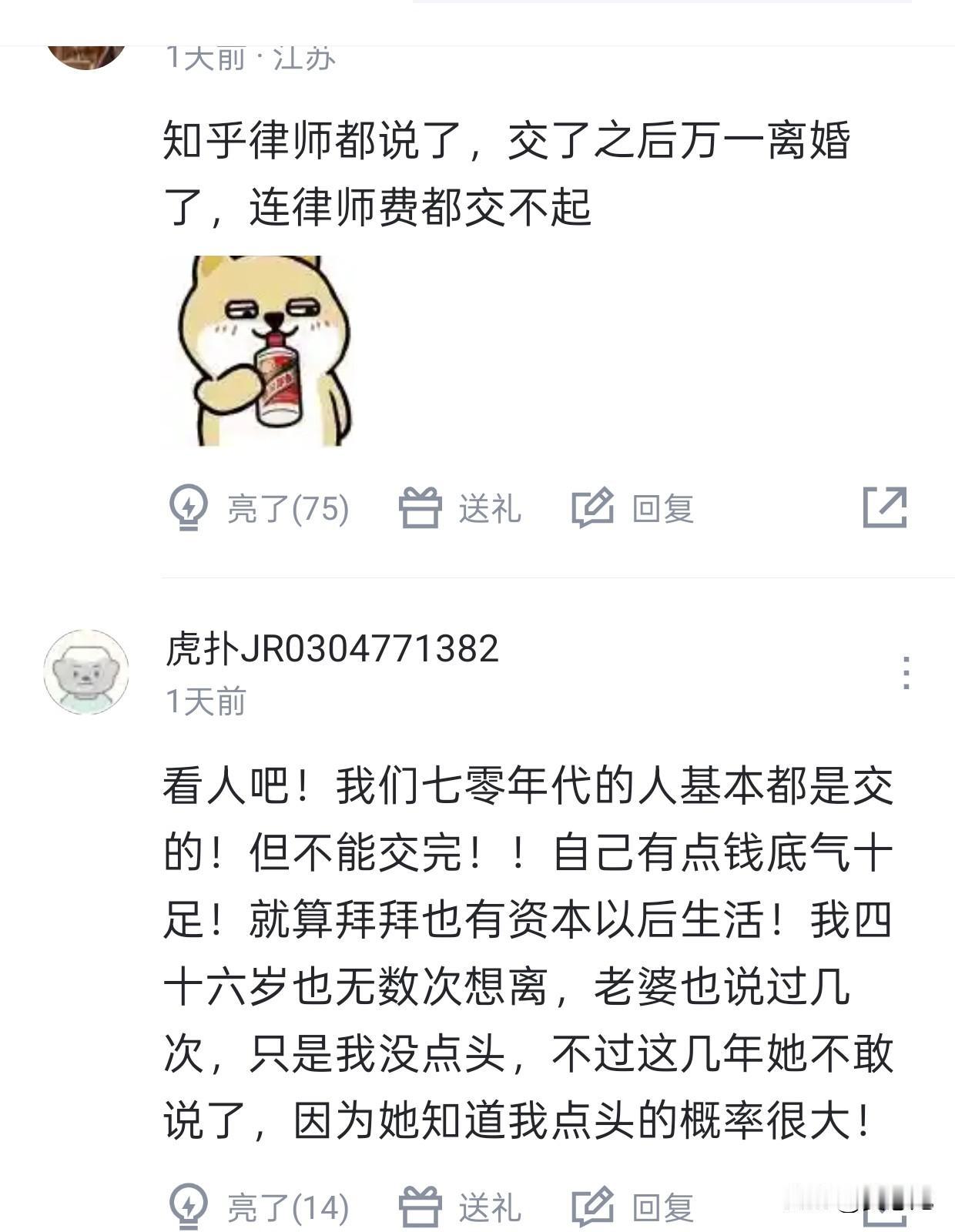 现在大家婚后钱都交给谁保管? 婚后财产保管没有绝对“唯一答案”,核心是兼顾信任、透明与实用性,结合家庭收入结构、消费习惯和双方理财能力选择,以下三种主流方式可参考: 1. 共同账户制(推荐首选) 双方每月固定存入一定比例收入(如各自收入的50%-70%)作为“家庭公共账户”,用于房贷、物业费、生活费、子女教育等共同开支;剩余部分归个人自由支配,用于个人消费、社交或兴趣支出。这种方式既保证了家庭财务的统一性,又保留了个人财务自主权,避免“经济捆绑”带来的矛盾,适合收入差距不大、消费观念相近的夫妻。 2. 分工保管制(互补型选择) 由擅长理财、细心严谨的一方负责“统筹管理”,另一方专注赚钱或负责日常开销记账。比如一方擅长基金、定期存款等理财,可主导家庭资产增值;另一方负责记录日常收支、缴纳账单,确保每笔钱去向清晰。关键是定期沟通财务状况(如每月一次家庭财务会议),避免单方面掌控导致的信息不对称。 3. 独立账户+共同储备金(灵活型选择) 双方收入各自保管,同时设立一个“共同储备金账户”,约定每月按固定金额或比例存入(如每人每月存2000元),专门用于应急、旅游、大额消费等共同目标。这种方式适合收入差异较大、注重个人财务独立的夫妻,既能满足各自的消费自由,又能通过共同储备金保障家庭共同需求,减少因消费观念差异引发的矛盾。 无论选择哪种方式,核心原则是自愿、透明、协商一致:避免强迫一方交出全部收入,避免隐瞒额外收入或负债,重大财务决策(如买房、投资)需双方共同商议。建议婚前就明确财产保管模式,婚后根据实际情况(如生育、换工作)灵活调整,既保障家庭财务稳定,也维护夫妻间的信任与平等。