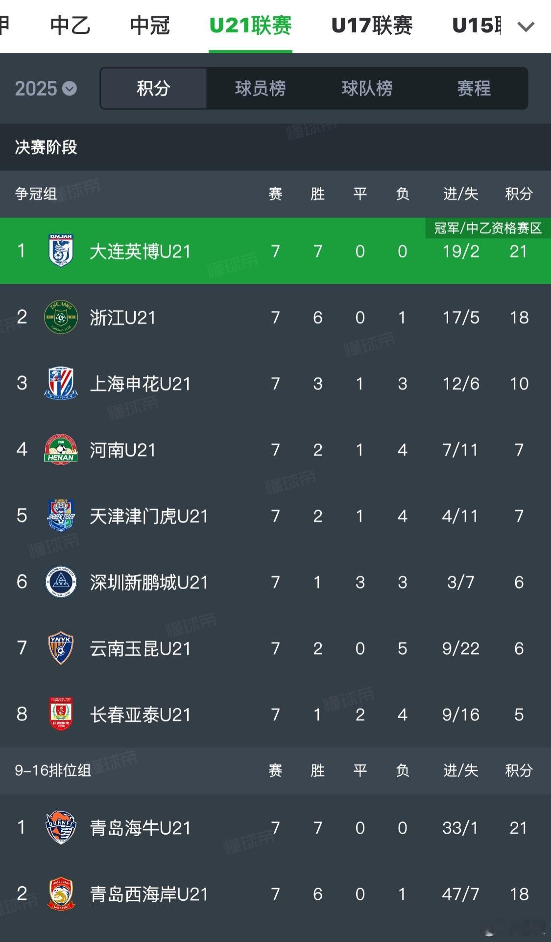 又一年的U21联赛结束了。u21联赛上海申花