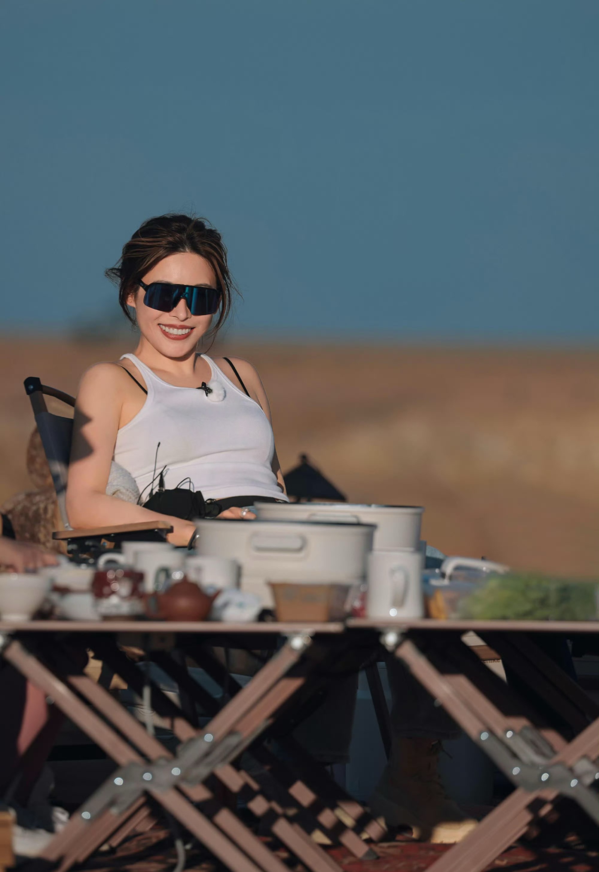 吴艳妮在成都穿着短裤大腿看起来很粗壮,表情自信又张扬